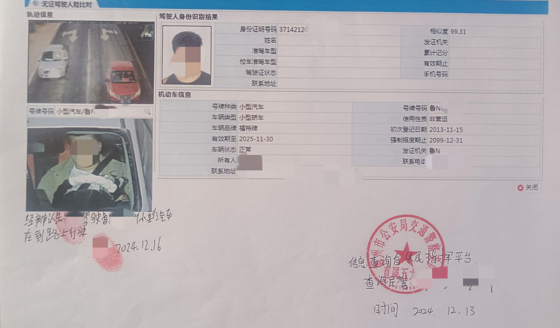 2024年12月13日16时许,齐河交警接到缉查布控系统预警,一辆号牌为鲁NE***2号小型轿车驾驶人驾驶证状态异常,涉嫌未取得驾驶证驾驶机动车的违法行为。民警接到指令后,立即对该车进行拦截,并将车辆及驾驶人席某彬查获。经民警调查取证,席某彬无有效驾驶证驾驶机动车的违法行为成立。席某彬曾于2021年5月10日因未取得驾驶证驾驶机动车被查处。最终席某彬被处以罚款1000元,并处行政拘留7日的行政处罚。
