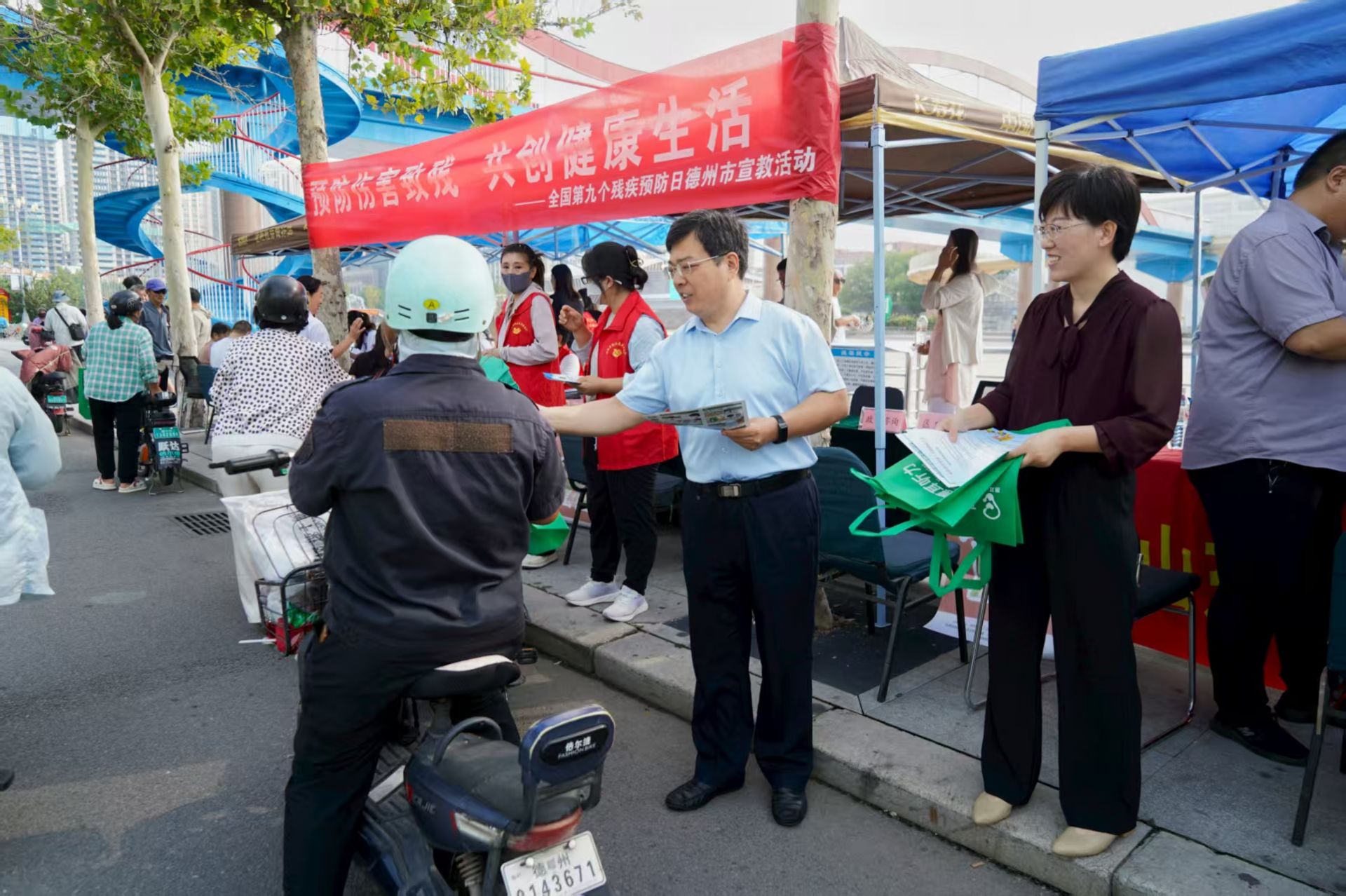 8月25日,市残联联合市公安局、市卫生健康委、市应急管理局、市妇幼保健院、德城区残联在中心广场开展大型义诊宣教活动。各单位结合自身职能及服务人群,针对性开展伤害致残、疾病致残等因素的残疾预防核心知识宣教。市妇幼保健院专家为过往群众提供便民义诊,英翔视光、惠耳助听器、健耳听力助听器等公司提供了清洗眼镜、视力检查、清理耳道、适配助听器等便民服务。活动现场氛围热烈,受到群众一致好评,共计发放各类残疾预防知识彩页500余份。