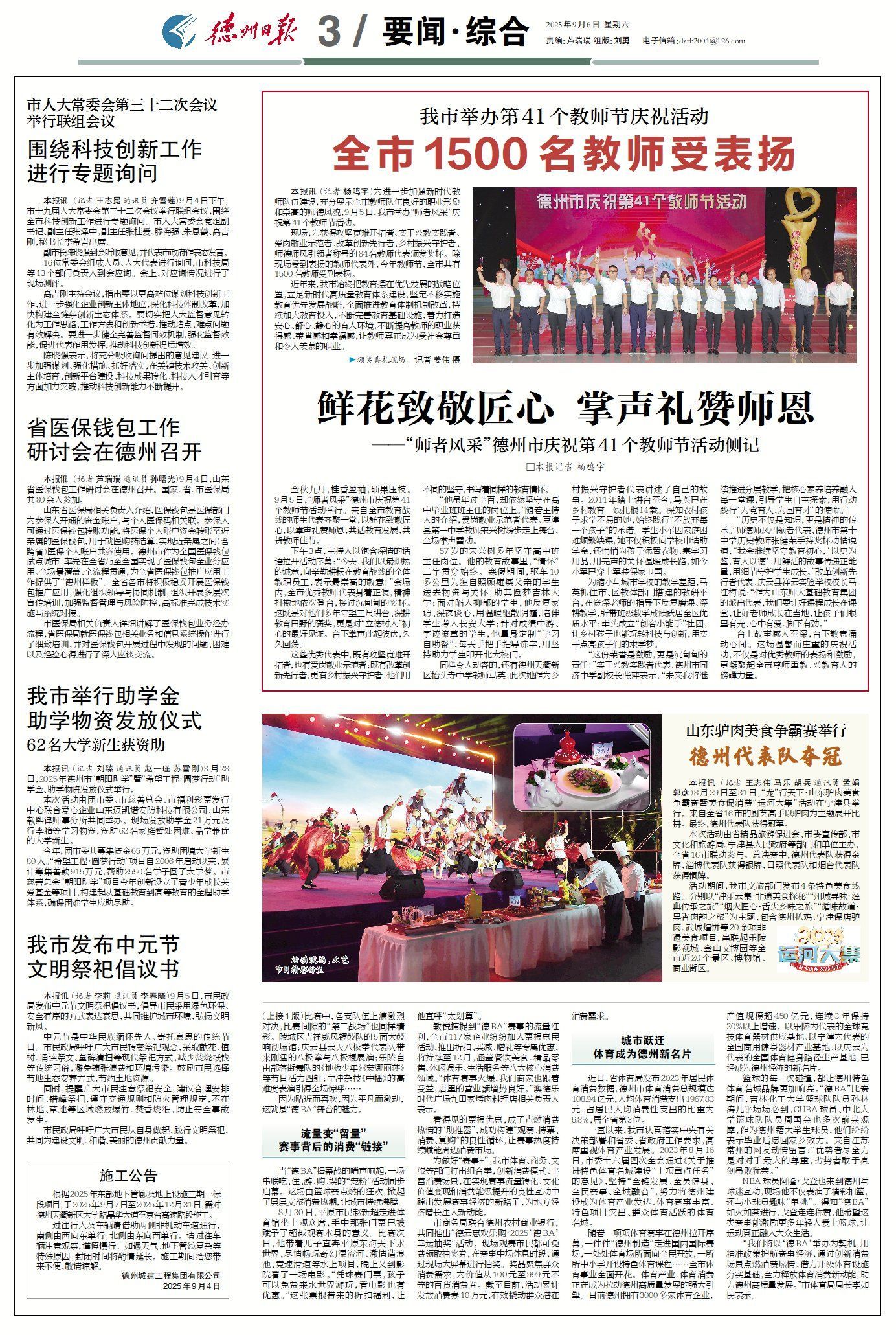 金秋九月,桂香盈袖,硕果压枝。9月5日,“师者风采”德州市庆祝第41个教师节活动举行。来自全市教育战线的师生代表齐聚一堂,以鲜花致敬匠心,以掌声礼赞师恩,共话教育发展,共贺教师佳节。