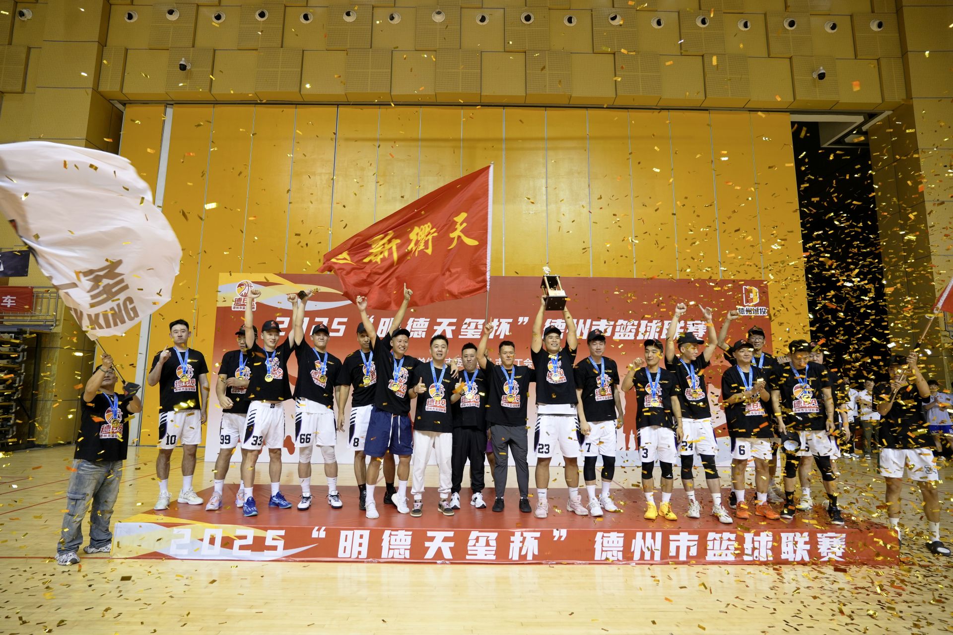 9月13日晚,在德州市体育馆进行的德州市篮球联赛(“德BA”)总决赛第二场中,天衢新区队以103:63战胜临邑队。凭借这场胜利,天衢新区队在总决赛中以总比分2:0击败对手,成功夺冠。临邑队获得亚军。