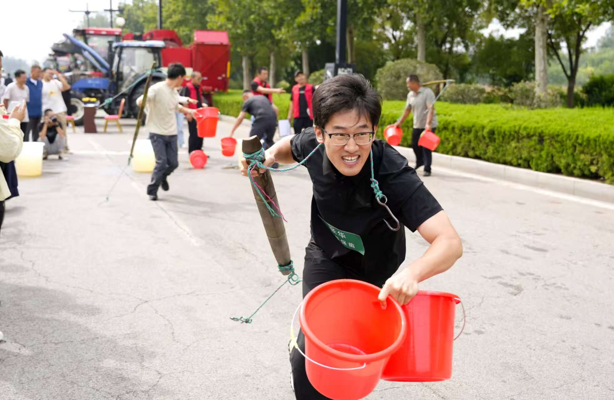 不远处的琵琶湾广场,则完全是另一个“战场”。篮球场上激烈对抗、乒乓球台前银球飞旋、象棋选手凝神对弈……欢笑声、喝彩声此起彼伏。“村里建起了健身广场,县镇经常组织运动会,大家的生活更加丰富多彩,乡村也越来越有人气了!”参赛选手于树磊说。趣味运动区成了欢乐的海洋——“抗旱保苗”赛场上,选手们肩担水桶、你追我赶;“颗粒归仓”赛场上,选手们麻袋运粮,比拼得不亦乐乎;拔河赛场上,选手们奋力拼搏,场下呼声震天……