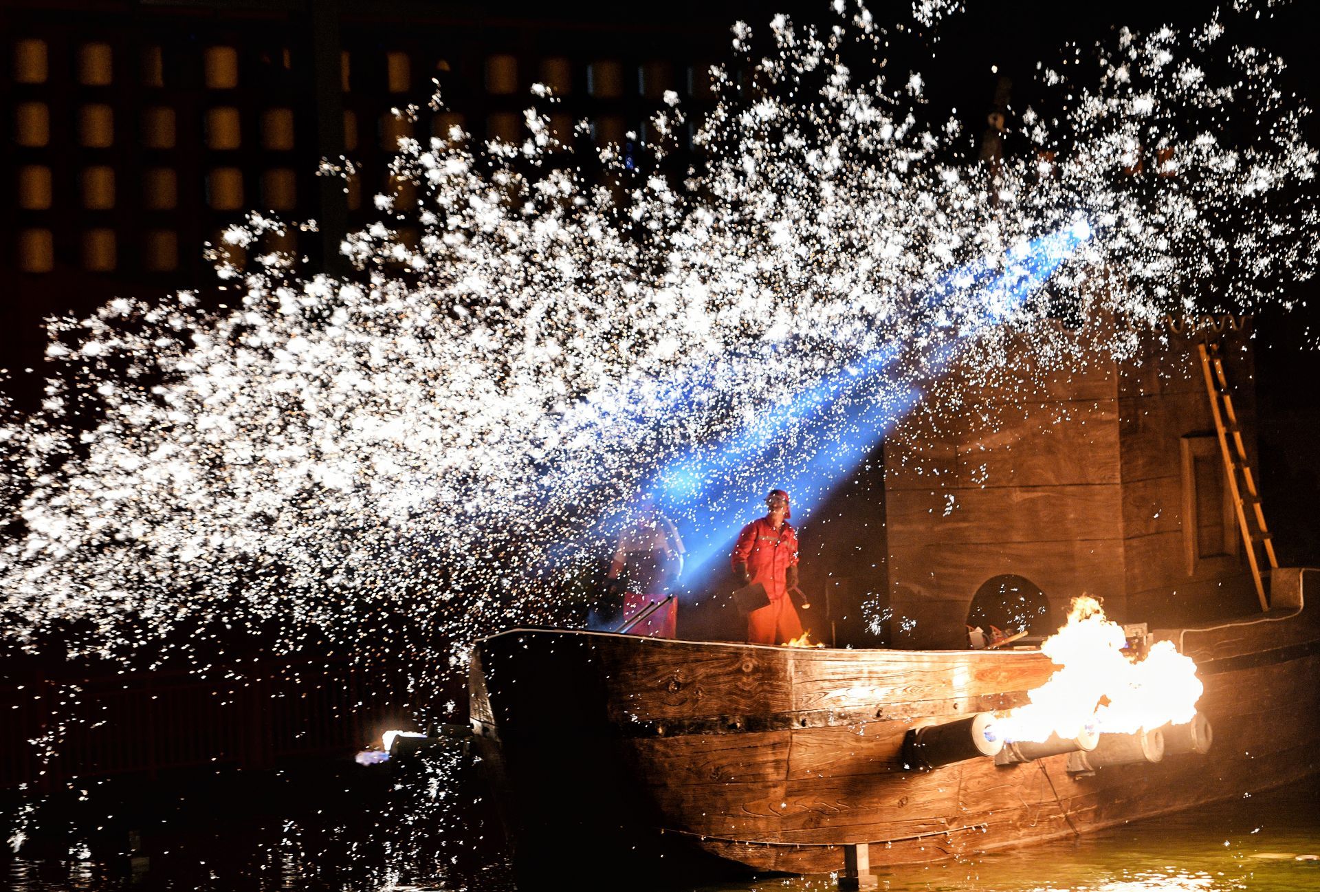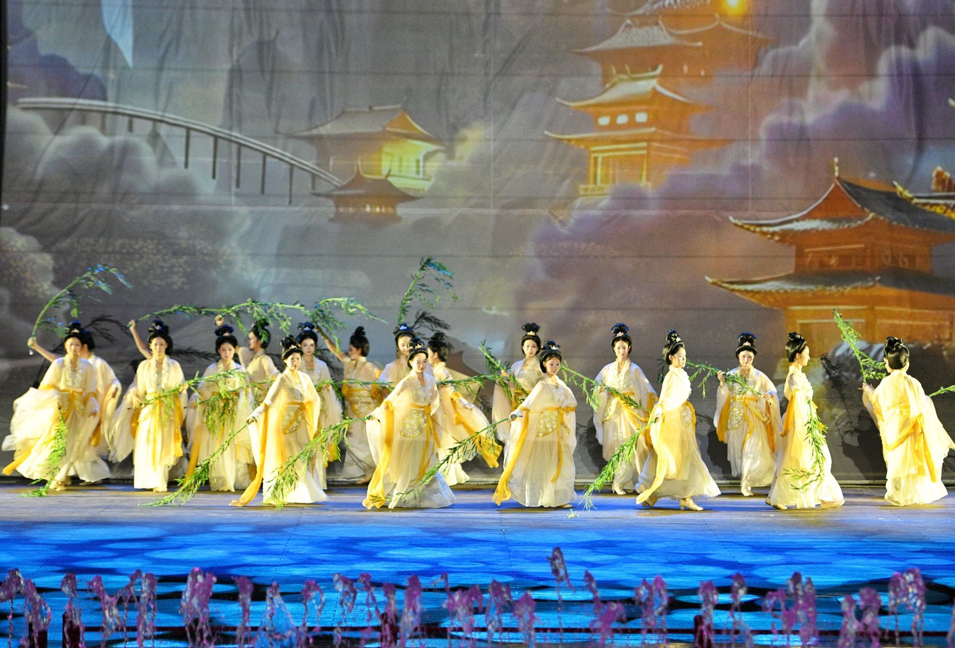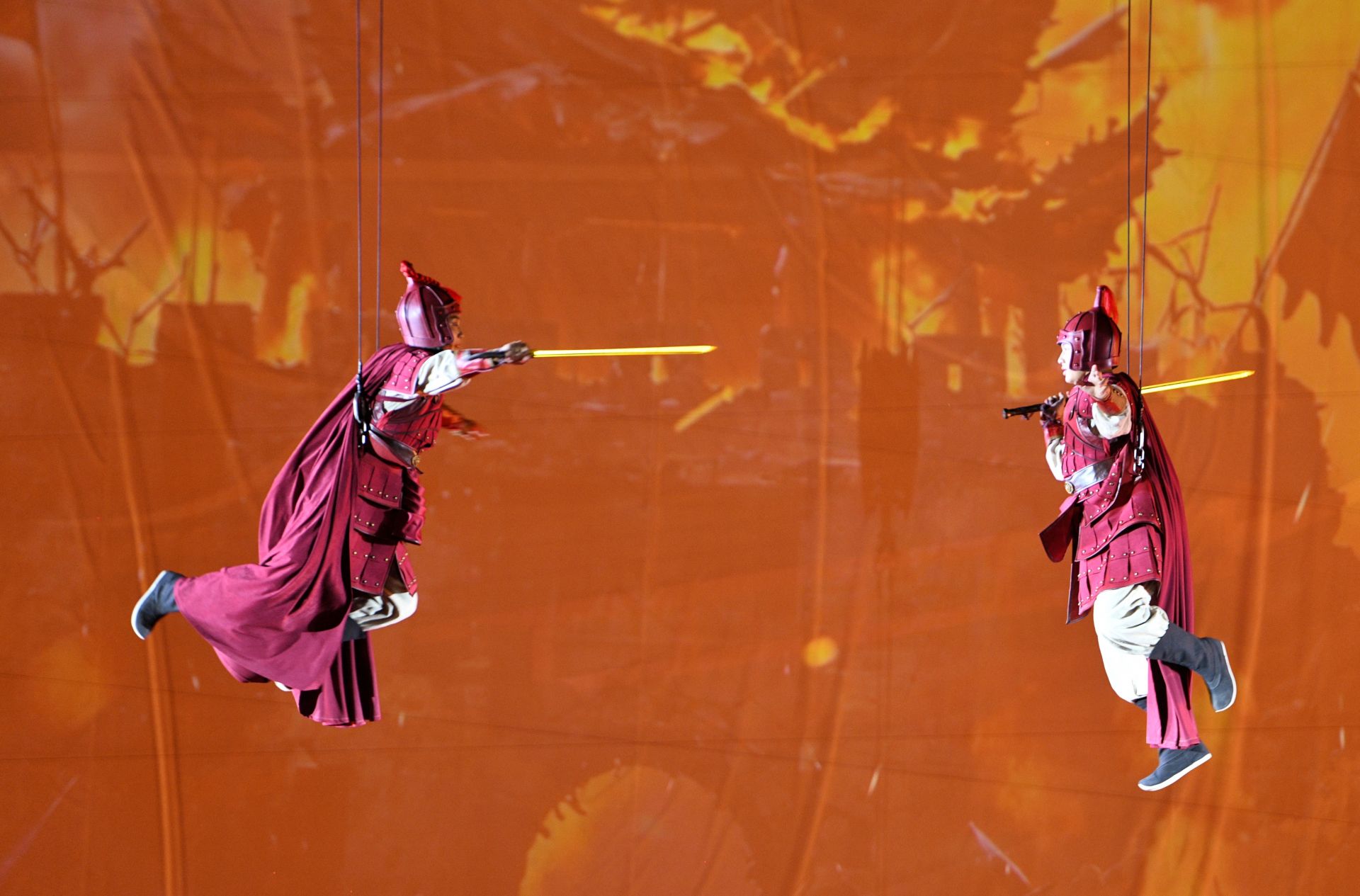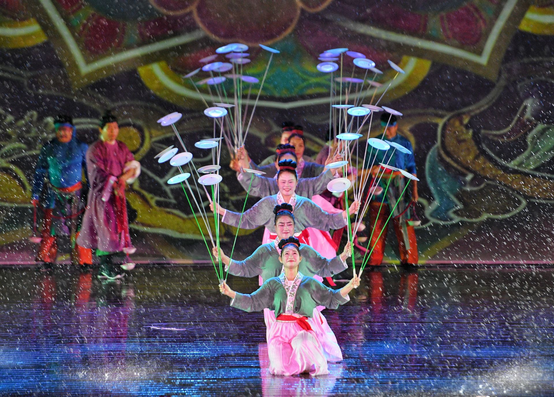 仪式结束后,与会嘉宾共同欣赏了《德运星河》的首场演出。该剧以沉浸式体验打破传统舞台界限,通过舞蹈、杂技等艺术形式,生动演绎了从“羿射九日”的神话传说到“大禹治水”的开拓故事,从“运河舟楫”的商贸繁华到“乾隆南巡”的盛世气象,为观众呈现了一场跨越时空的视听盛宴。