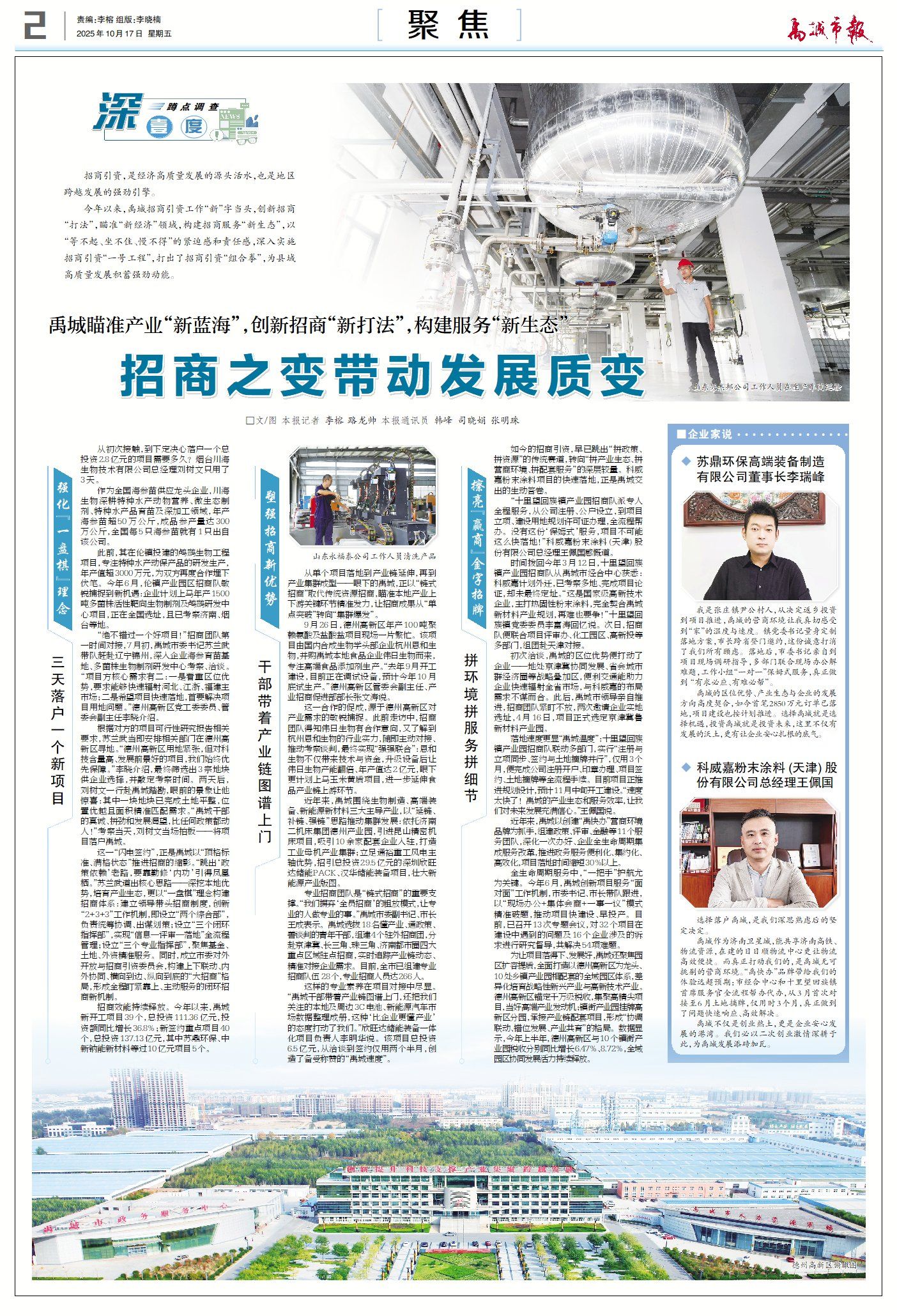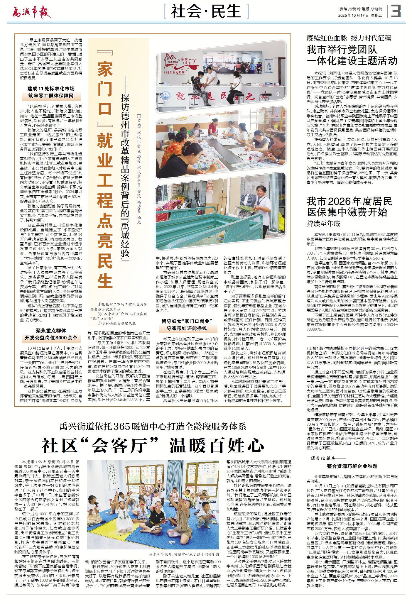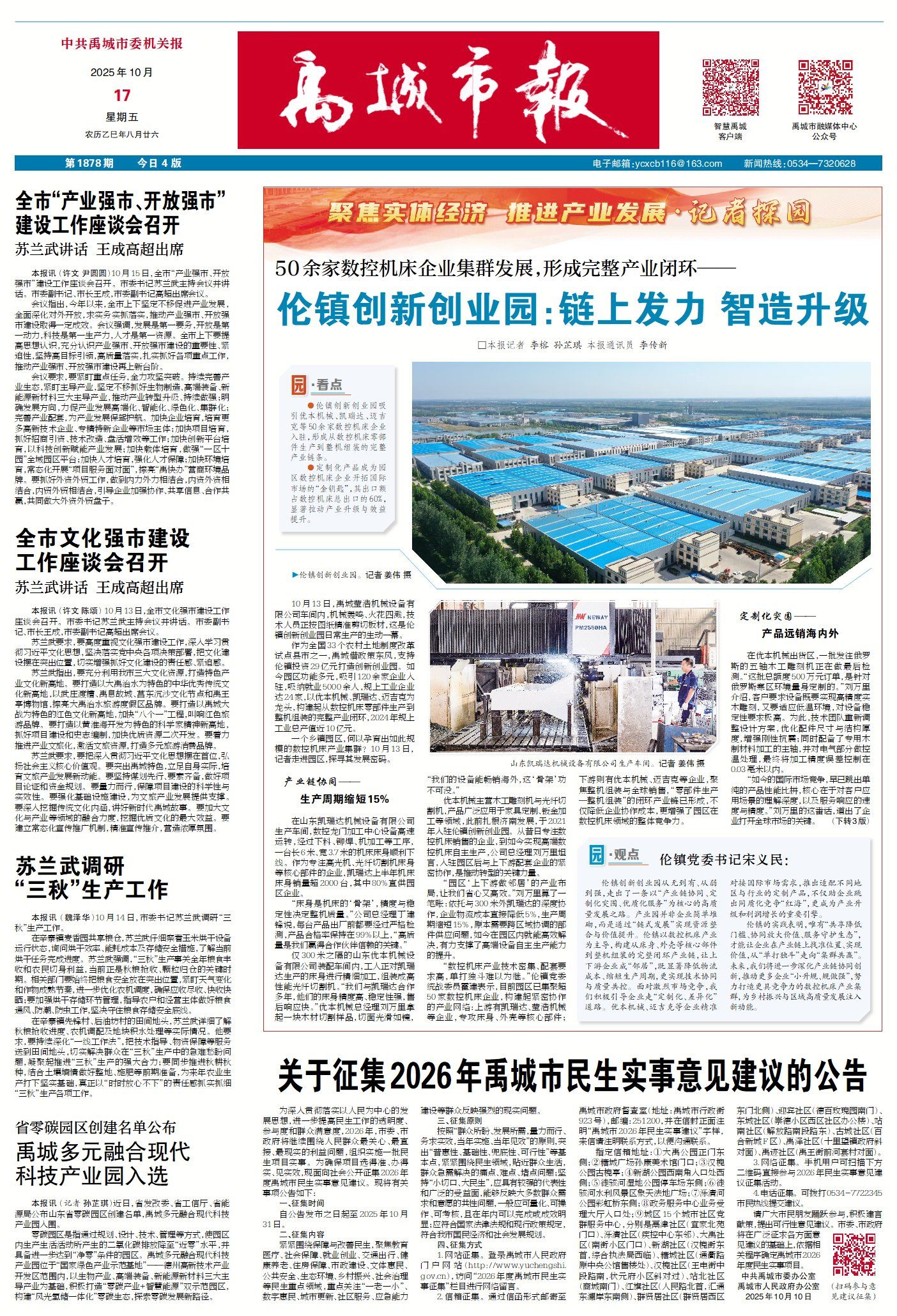 禹城市新闻周报(10月11日至10月17日) ©原创 2025-10-17 18:20 德州日报 0 ▶聚焦实体经济 推进产业发展·记者探园|50余家数控机床企业集群发展,形成完整产业闭环—— 伦镇创新创业园:链上发力 智造升级。(查看详情) ▶禹城瞄准产业“新蓝海”,创新招商“新打法”,构建服务“新生态” | 招商之变带动发展质变。(查看详情) ▶社区“会客厅” 温暖百姓心 | 禹兴街道依托365暖留中心打造全龄段服务体系。(查看详情) ▶德报读图 | 王玉芹:从赛场“追光者”到赛道“领跑员”。(查看详情) 德州日报新媒体出品编辑|李晓楠审核|李榕 终审|尹滨 (作者:德州日报)