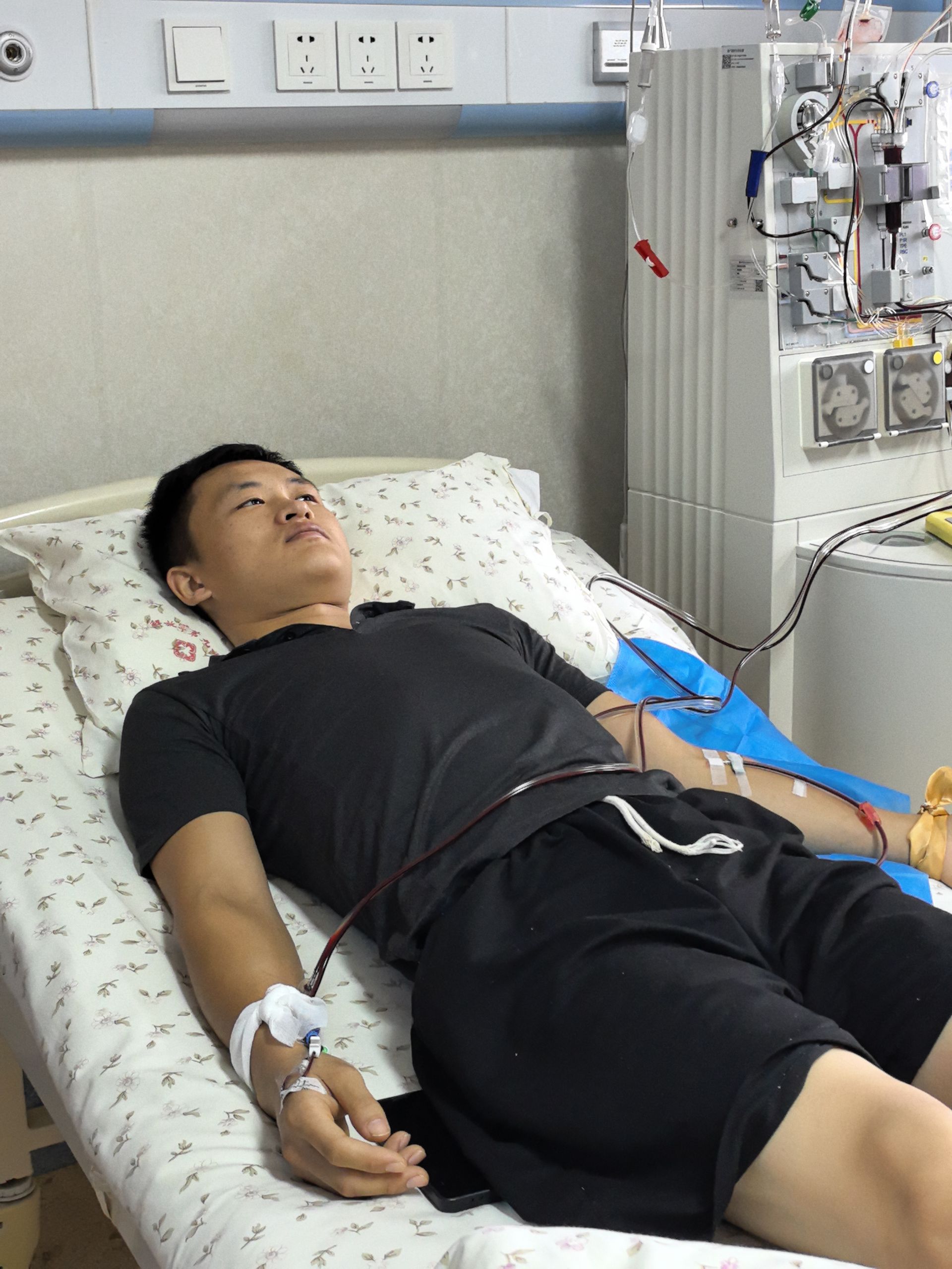 5天时间里,徐乃峰全程配合医护人员完成干细胞动员与采集。当正式采集针管刺入手臂,长达5小时的等待中,疲惫与不适难免袭来,但他始终笑着:“打针、采集是有点累,可比起能挽救一个生命,这些都不算什么。”