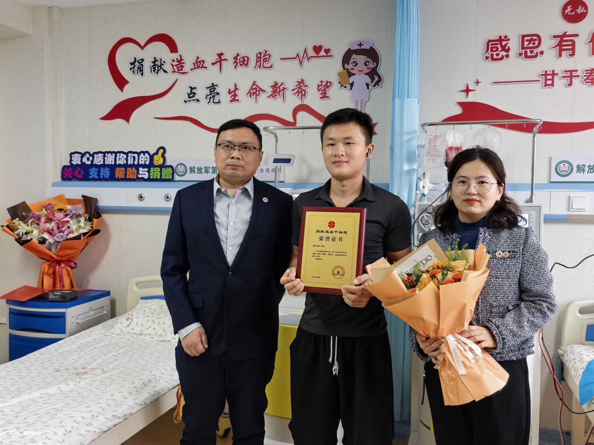 10月17日,在中国人民解放军联勤保障部队第九六〇医院血液病科,经过5个小时的采集,造血干细胞捐献志愿者徐乃峰成功采集290ml造血干细胞。这些“生命的种子”,即将为一位素未谋面的血液病患者点亮重生希望。