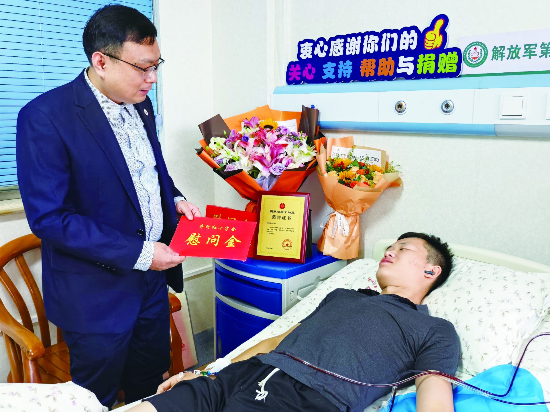 同时,齐河县政府办公室党组成员、副主任兼齐河县红十字会党组书记、常务副会长吴斌,齐河县红十字会党组成员、副会长张婧文也来到现场,为他送上慰问金和鲜花。面对关怀,徐乃峰说得最多的还是“缘分”:“配型成功率这么低,能遇上就是缘分,也是我的责任。”