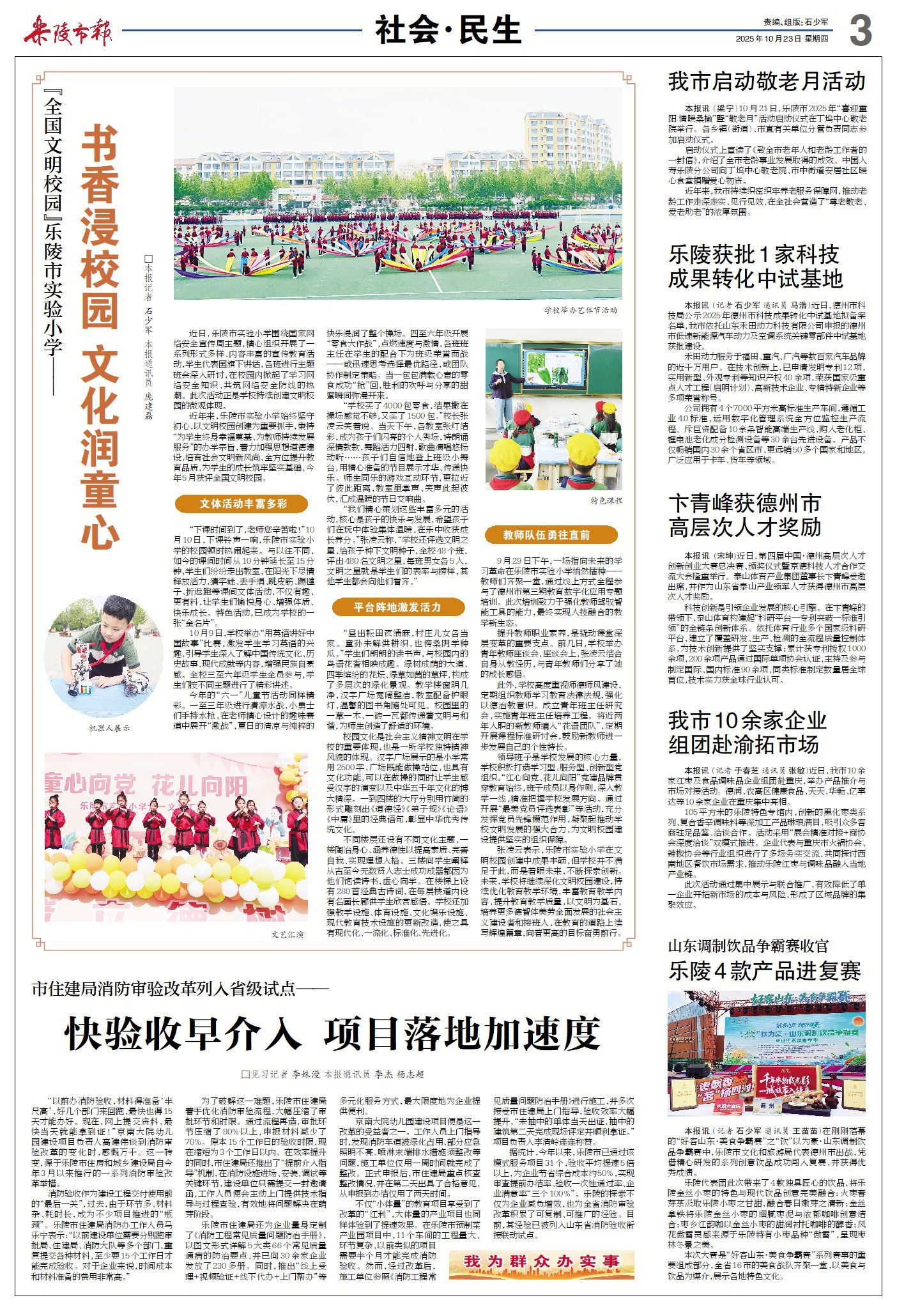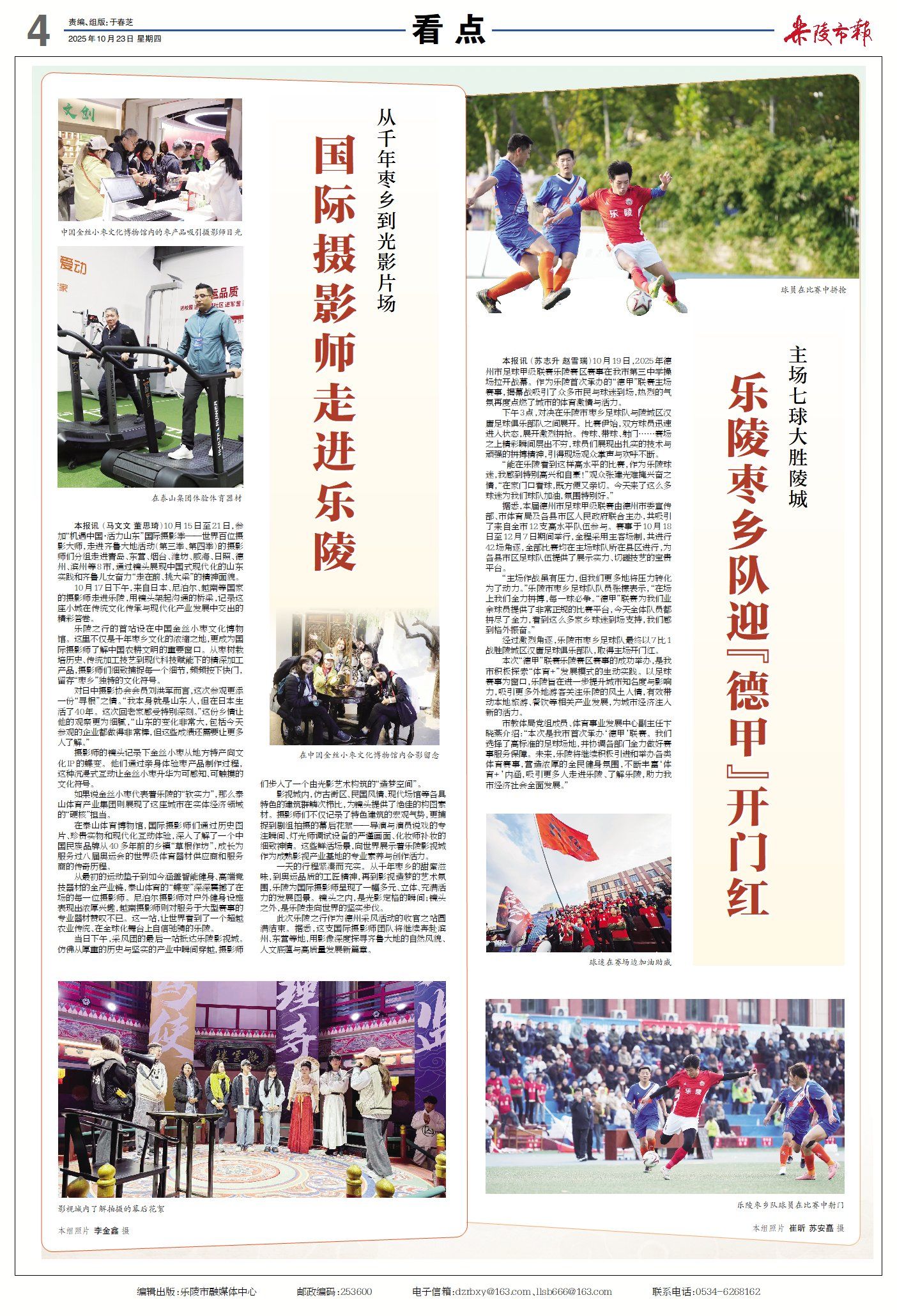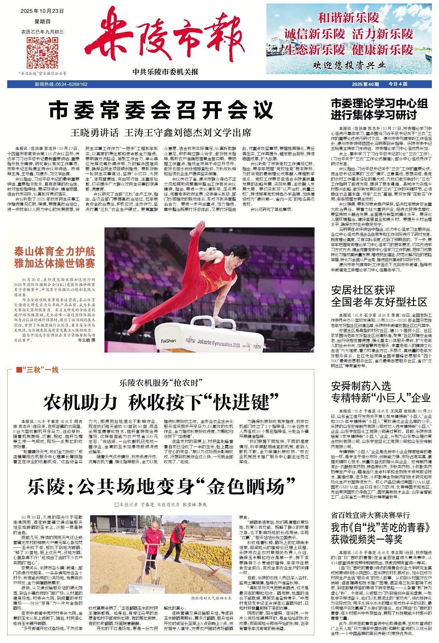 乐陵市新闻周报(10月17日至10月23日) ©原创 2025-10-23 07:31 德州日报 0 ▶乐陵:农机服务“抢农时”,秋收按下“快进键”(点击查看详情) ▶乐陵:公共场地变身“金色晒场”(点击查看详情) ▶乐陵构建协同治理体系,推动城市更新与生态发展同频共振(点击查看详情) ▶乐陵市实验小学是这样建成全国文明校园的(点击查看详情) ▶从千年枣乡到光影片场,国际摄影师走进乐陵(点击查看详情) ▶乐陵枣乡足球队迎“德甲”开门红,主场7球大胜陵城(点击查看详情) 德州日报新媒体出品编辑|于春芝审核|胥爱珍 终审|尹滨 (作者:德州日报)