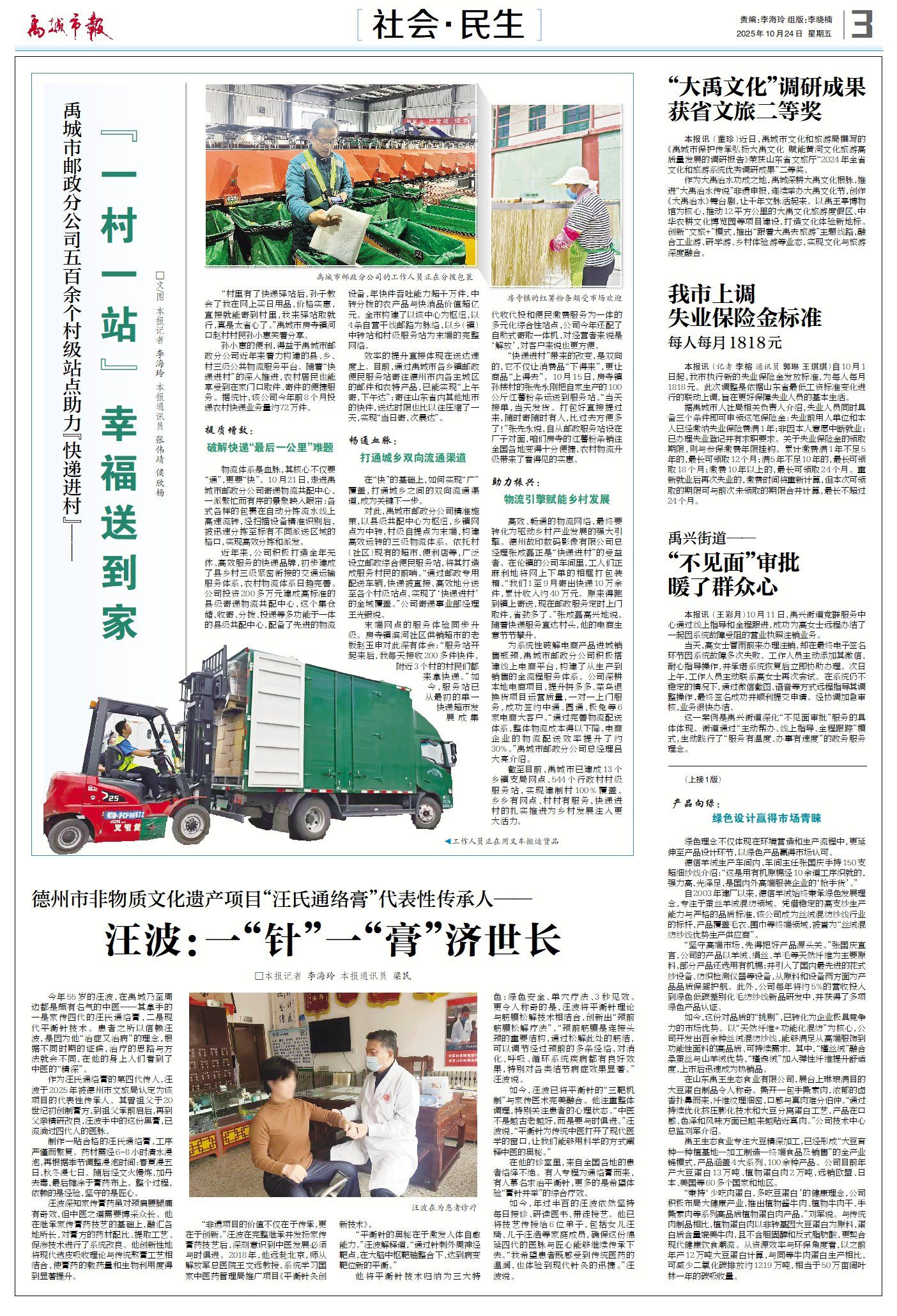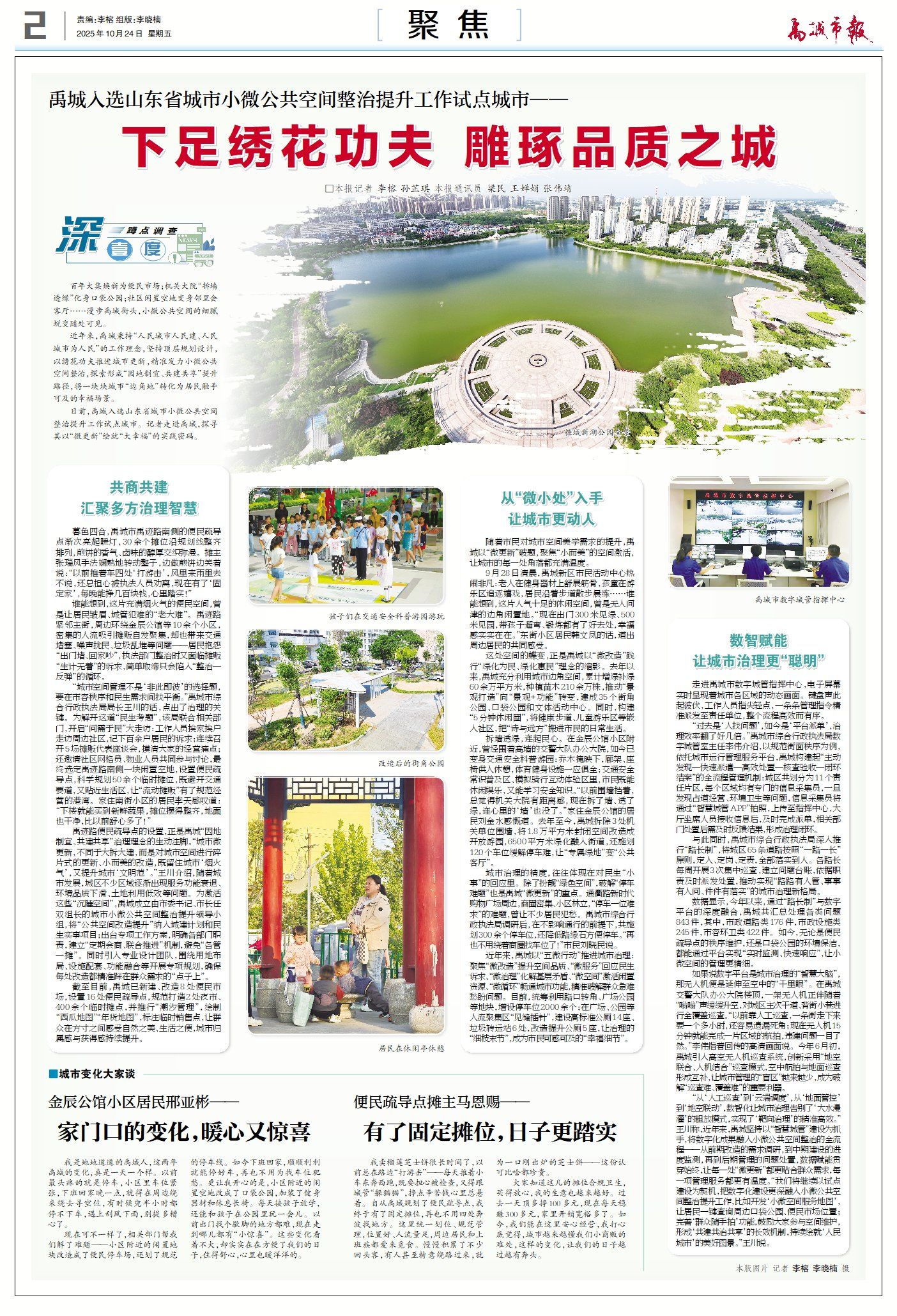 禹城市新闻周报(10月18日至10月24日) ©原创 2025-10-24 15:43 德州日报 0 ▶禹城构建“市级—省级—国家级”绿色制造梯次培育体系 | 绿色低碳激活发展新动能。(查看详情) ▶禹王制药深耕细分市场,产品销往全球80余个国家和地区 | 22级品控产出高品质鱼油。(查看详情) ▶禹城入选山东省城市小微公共空间整治提升工作试点城市 | 下足“绣花功夫” 雕琢品质之城。(查看详情) ▶禹城市邮政分公司544个村级站点助力“快递进村”: “一村一站” 幸福送到家。(查看详情) ▶文化 | 讲好大禹文化新故事。(外六篇·首) 德州日报新媒体出品编辑|李晓楠审核|李榕 终审|尹滨 (作者:德州日报)