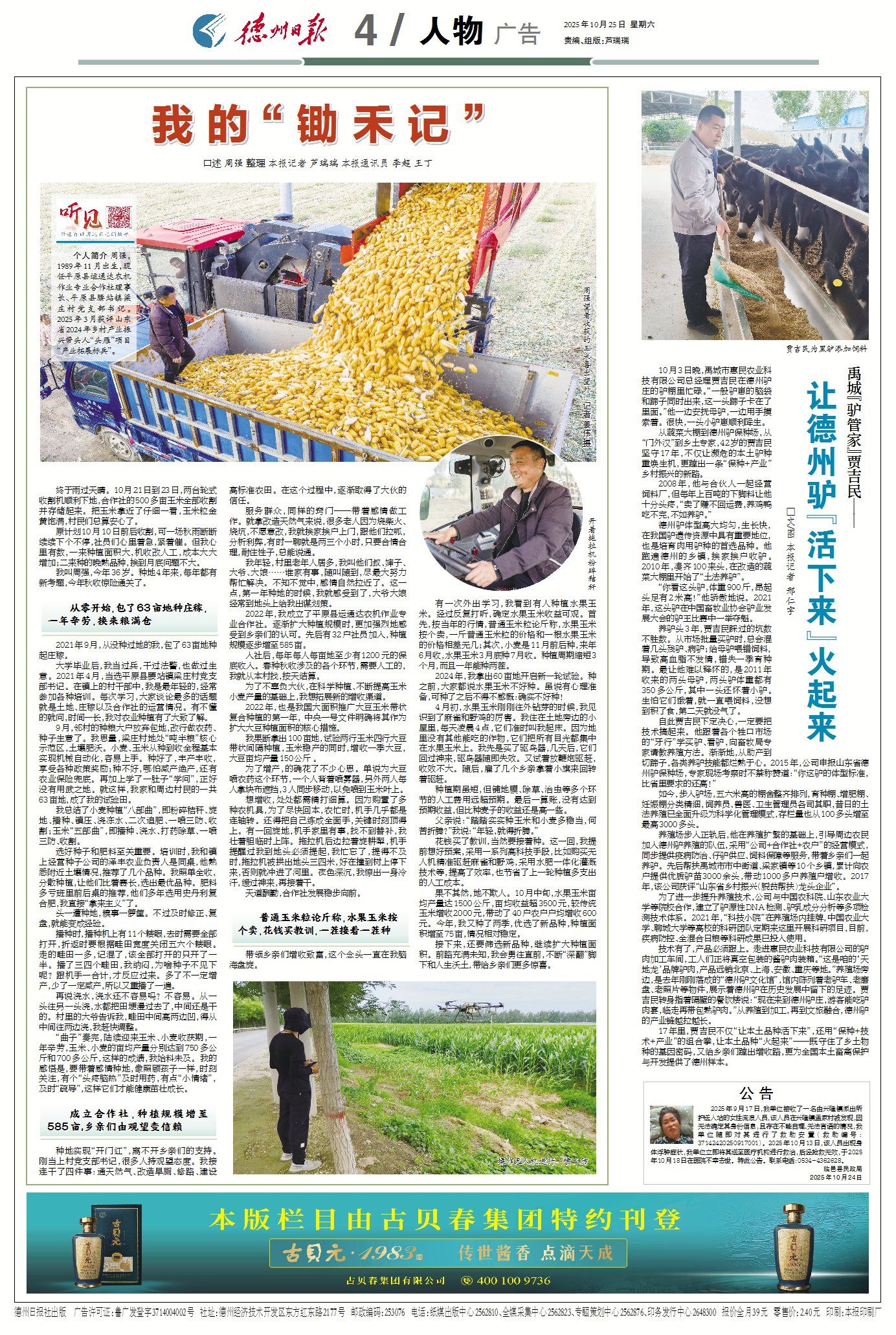 果不其然,地不欺人。10月中旬,鲜食玉米亩均产量达1500公斤,亩均收益超3500元,较传统玉米增收2000元,带动了40户农户户均增收600元。今年,我又种了两季,优选了新品种,种植面积增至75亩,情况相对稳定。