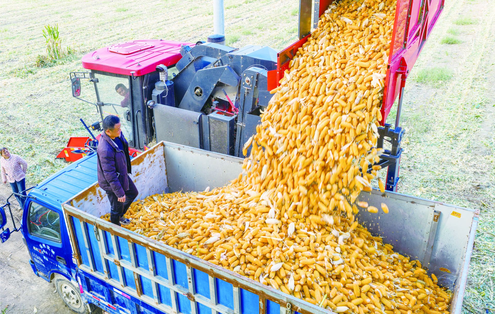 终于雨过天晴。10月21日到23日,2台轮式收割机顺利下地,合作社的500多亩玉米全部收割并存储起来。把玉米拿近了仔细一看,玉米粒金黄饱满,村民们总算安心了。