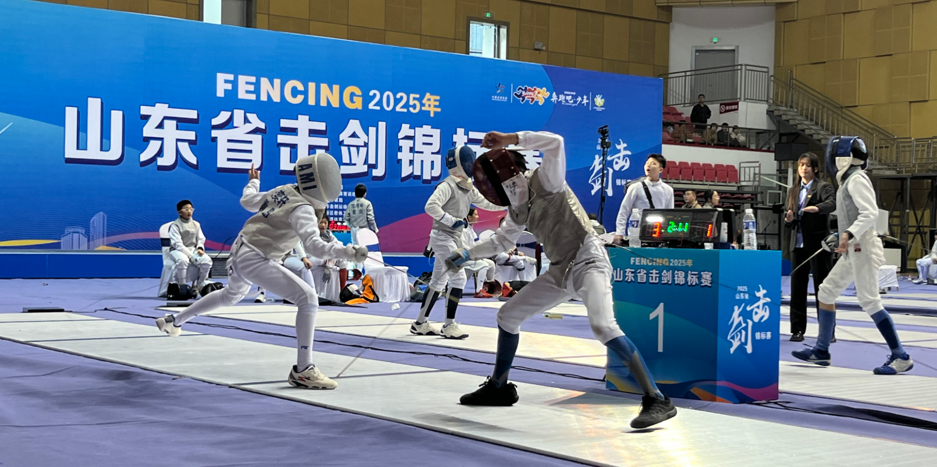 10月25日,2025年山东省击剑锦标赛在德州市体育馆开赛。来自全省各地市的642名运动员齐聚一堂,在剑道上展开激烈角逐。