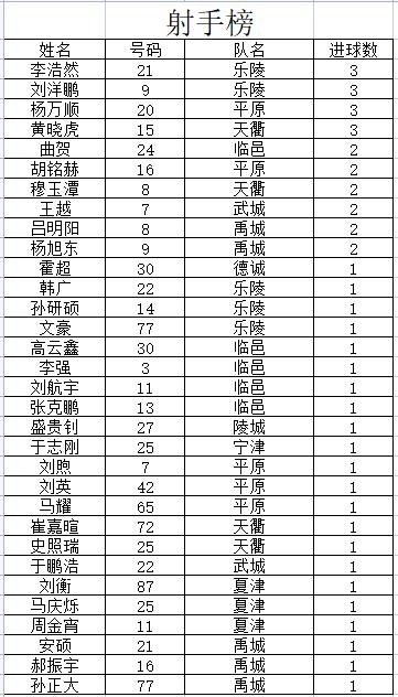 26日B组三场比赛中,首轮均大胜对手的乐陵队和天衢队展开强强对话,在实力接近的情况下,乐陵在主场拿下比赛。临邑队也继续胜利的步伐,4球取胜,在积分榜上继续与乐陵队同分,仅仅因为净胜球的劣势排名第二。