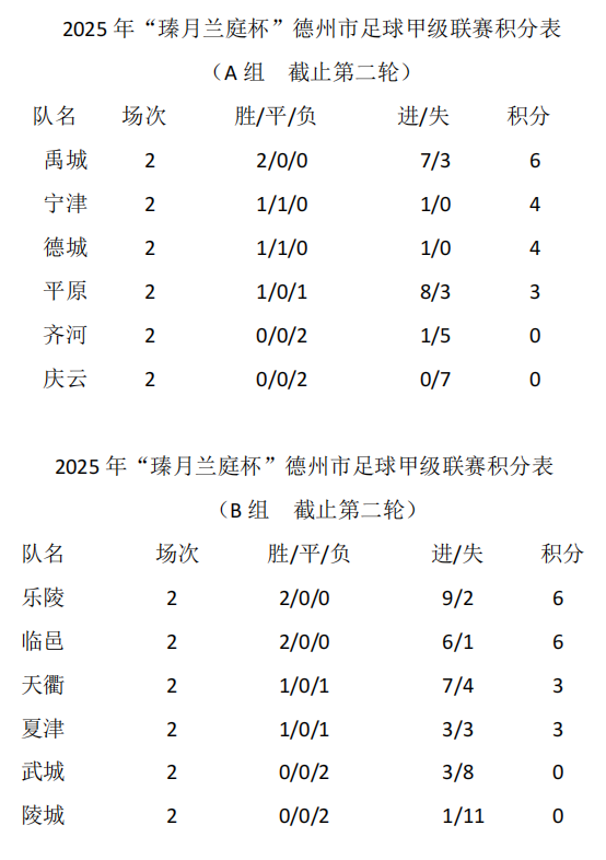 2025 年“瑧月兰庭杯”德州市足球甲级联赛第三轮对阵表