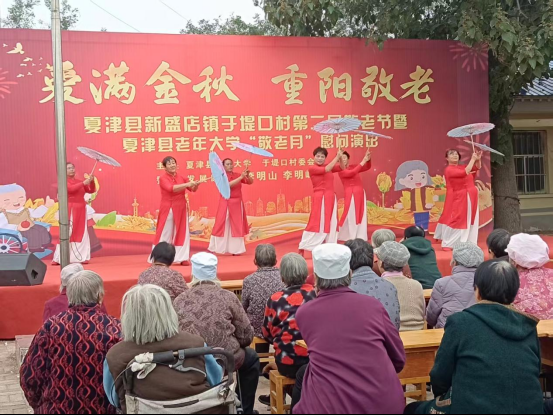 活动现场锣鼓喧天、笑语不断。于堤口、拐尔庄等村为老人们带来了形式多样的精彩节目——铿锵有力的戏曲选段赢得满堂喝彩;欢快活泼的秧歌舞步点燃现场气氛;一首首经典老歌更引发了全场老人的集体合唱。台上台下热情互动,掌声与欢笑连绵不断,将重阳节的喜庆氛围一次次推向高潮。