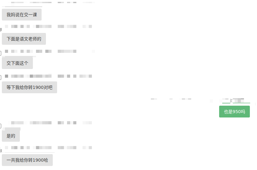 “还有一门课要交1900元,您一起帮我付了吧回头让我妈转给您。”