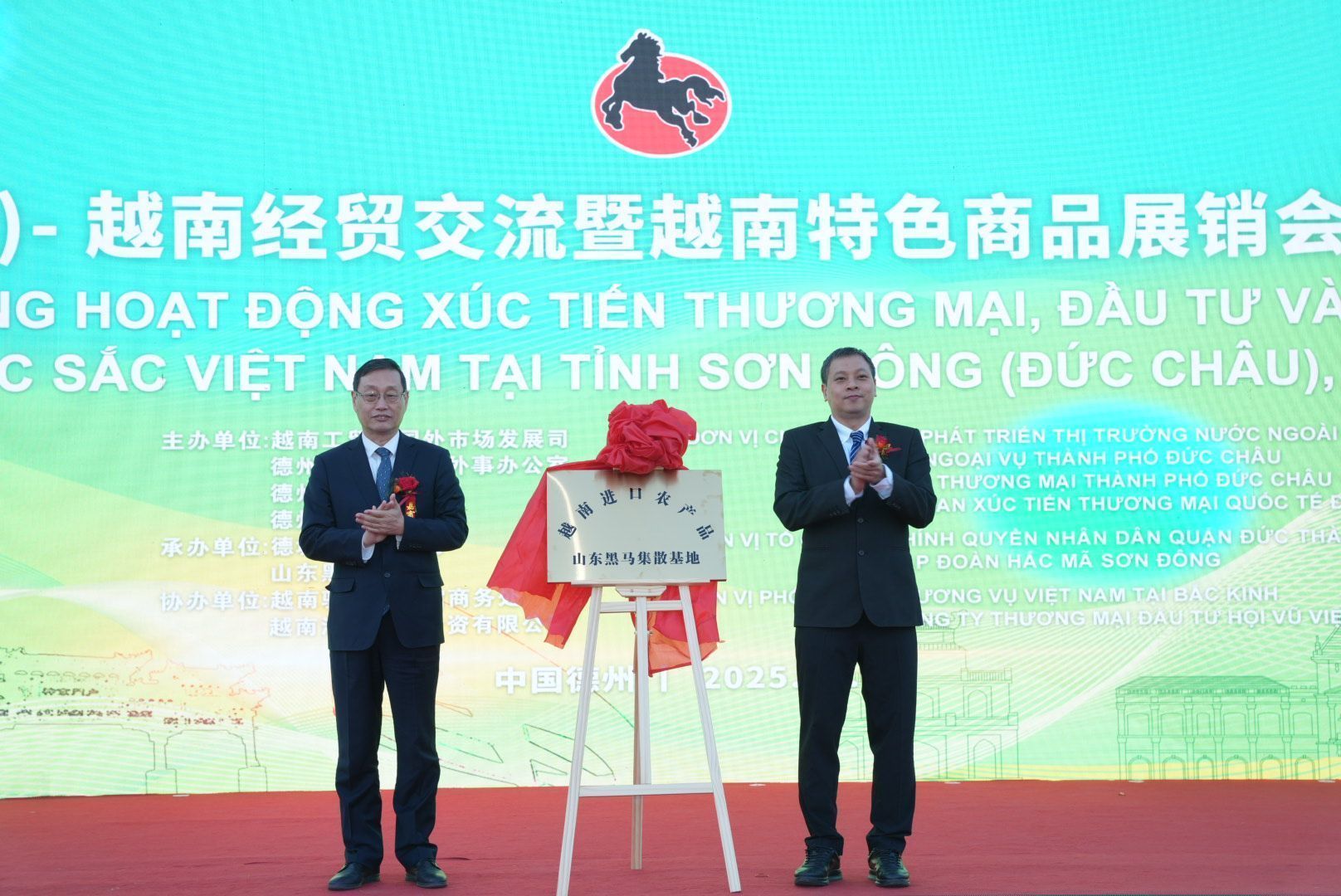 会上,先后为越南农产品山东黑马集散基地、德州市精品旅游协会果蔬文化专业委员会揭牌;介绍了黑马集团情况,推介了黑马果品批发市场和招商政策。