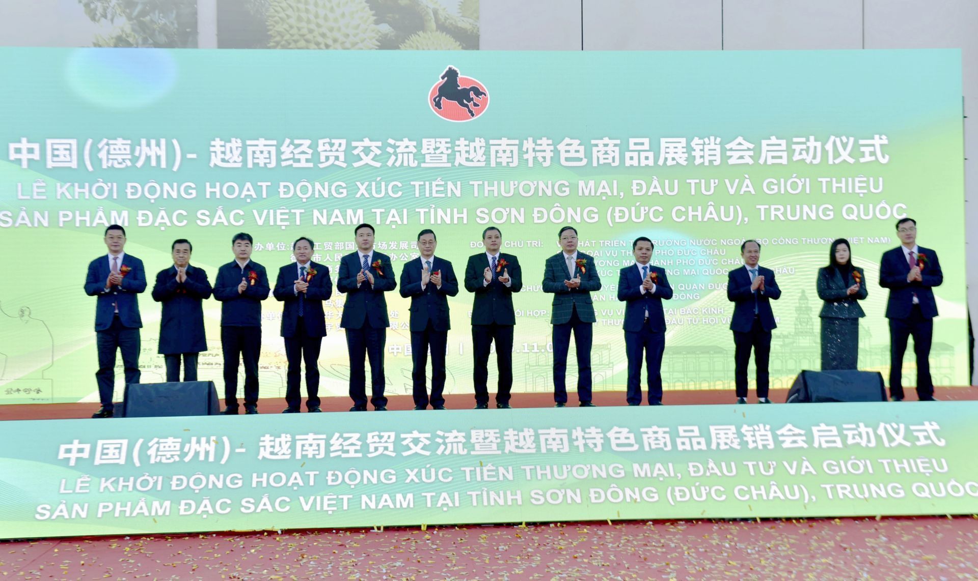 11月2日,中国(德州)——越南经贸交流暨越南特色产品展销会启动仪式在我市举行。越南工贸部国外市场发展司副司长苏玉山,越南驻中国大使馆商务参赞农德来,省贸促会副会长贺忠军,副市长陈海明出席。