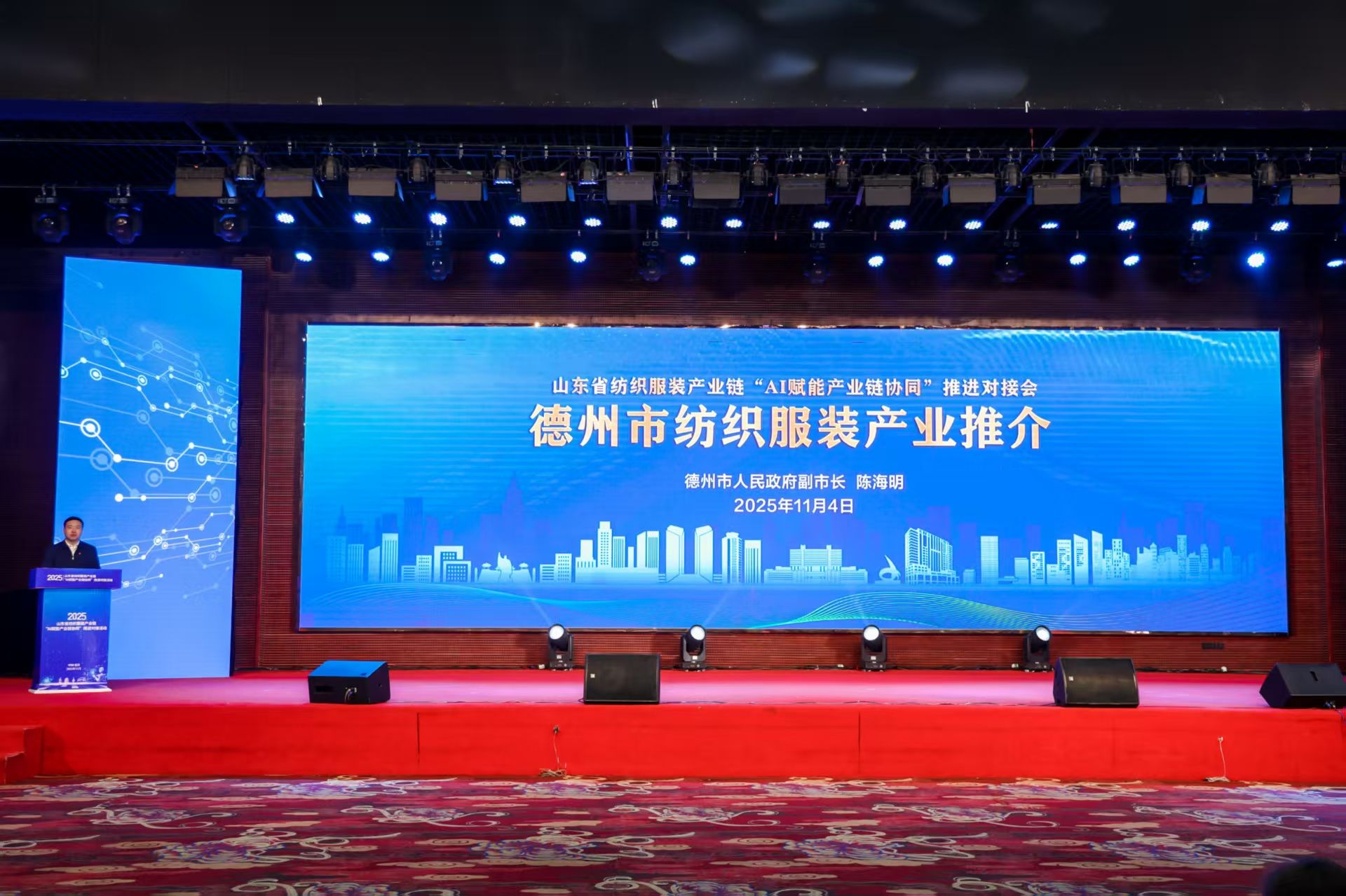 “AI如何破解产业链协同瓶颈?”“传统纺织集群该如何破局升级?”11月4日,山东省纺织服装产业链“AI赋能产业链协同”推进对接会在夏津成功举办。来自青岛、枣庄、昌邑及夏津本地的四大核心纺织产业集群代表与百余位行业同仁齐聚一堂,现场座无虚席,热议声、掌声此起彼伏,一场聚焦集群协同与AI赋能的产业升级盛会在此拉开帷幕。