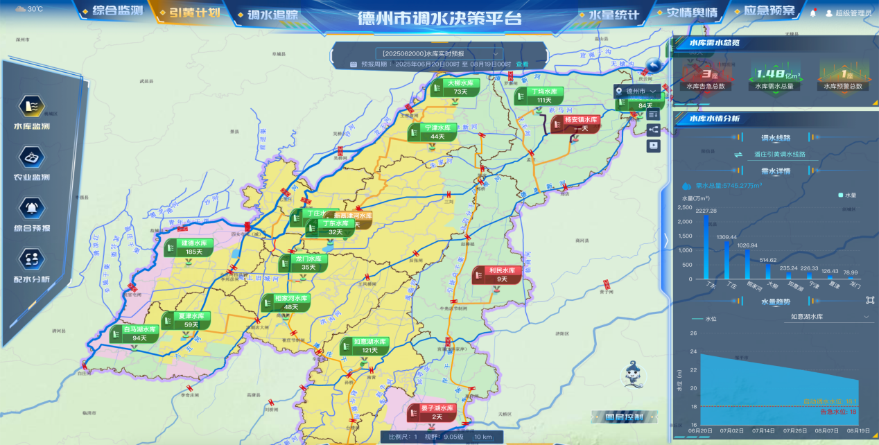 该项目的落地应用,实现了德州水利治理的三大突破性升级:一是首次达成“防洪安全”与“供水保障”协同优化,通过实时模拟雨情、水情变化,精准预测河道水位、流量动态,提前制定防汛调度方案,2024年汛期有效削减洪峰流量15%,保障了沿岸20余万亩农田及30万群众的生命财产安全;二是提升水资源调配效率,依托平台动态监测全市14座泵站、88处闸站运行状态,2023-2024年度精准完成6.3亿立方米供水任务,为农业灌溉、工业生产及居民生活用水提供稳定保障;三是打通跨部门协同壁垒,整合水利、应急、农业等多部门数据资源,实现水情监测、调度指令、应急响应的“一网通办”,应急响应效率较传统模式提升50%以上。