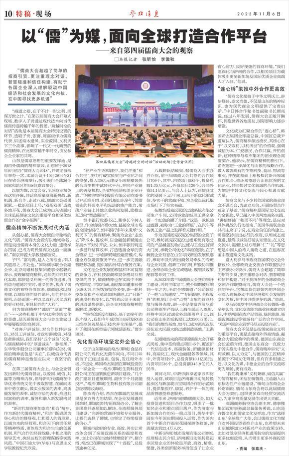 儒商大会不仅是弘扬儒家商业文明的重要平台,更是连接海外侨商情感、凝聚合力报效桑梓的桥梁。德国山东商会会长孟萌介绍,德国山东商会一直致力于务实推动中德合作,儒商精神讲究“义利兼顾、以义为先”,与德国的工匠精神虽源于不同文化背景,但有许多相通之处。以文化为媒,中德企业的合作交流将更为顺畅,更有成效。