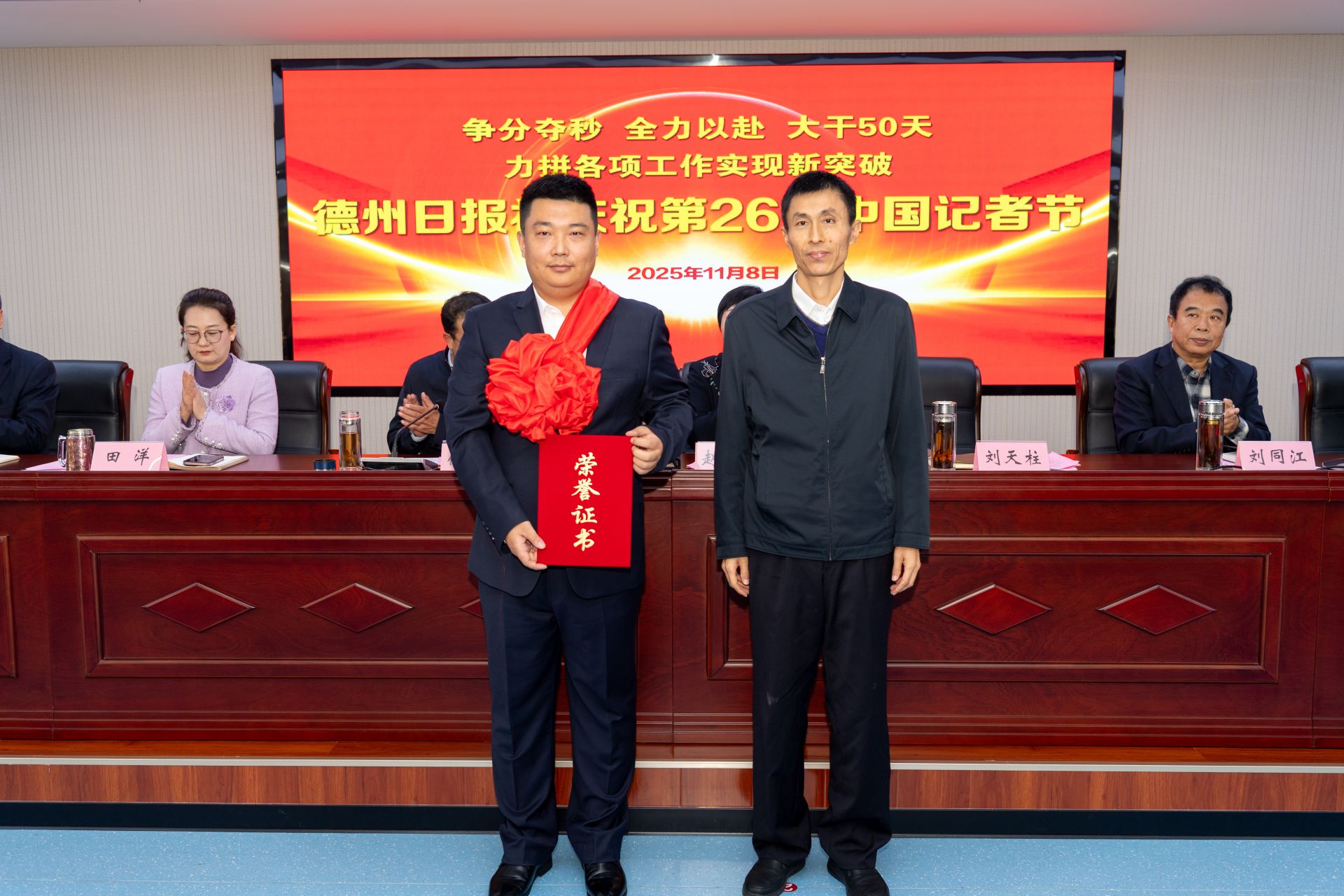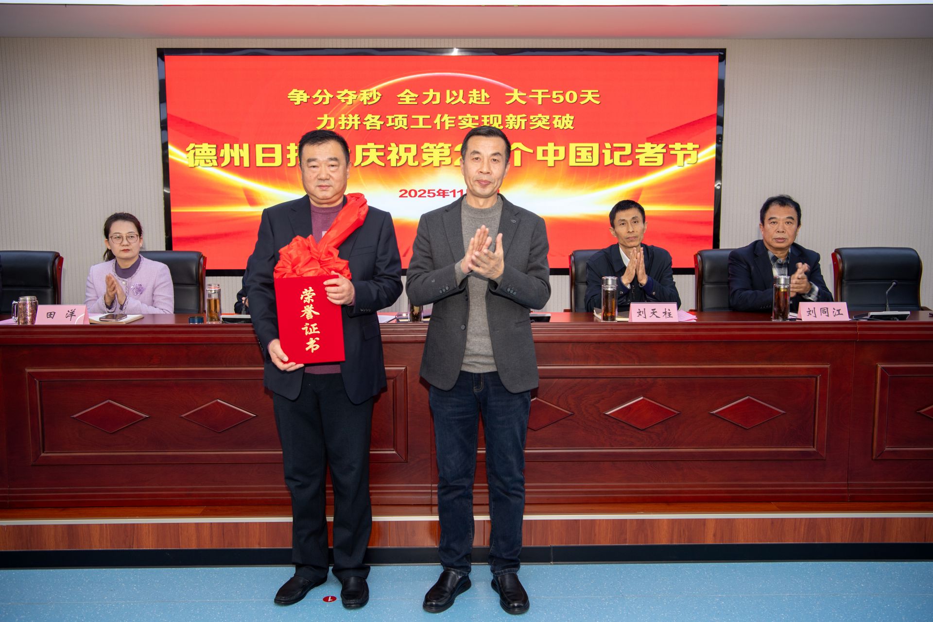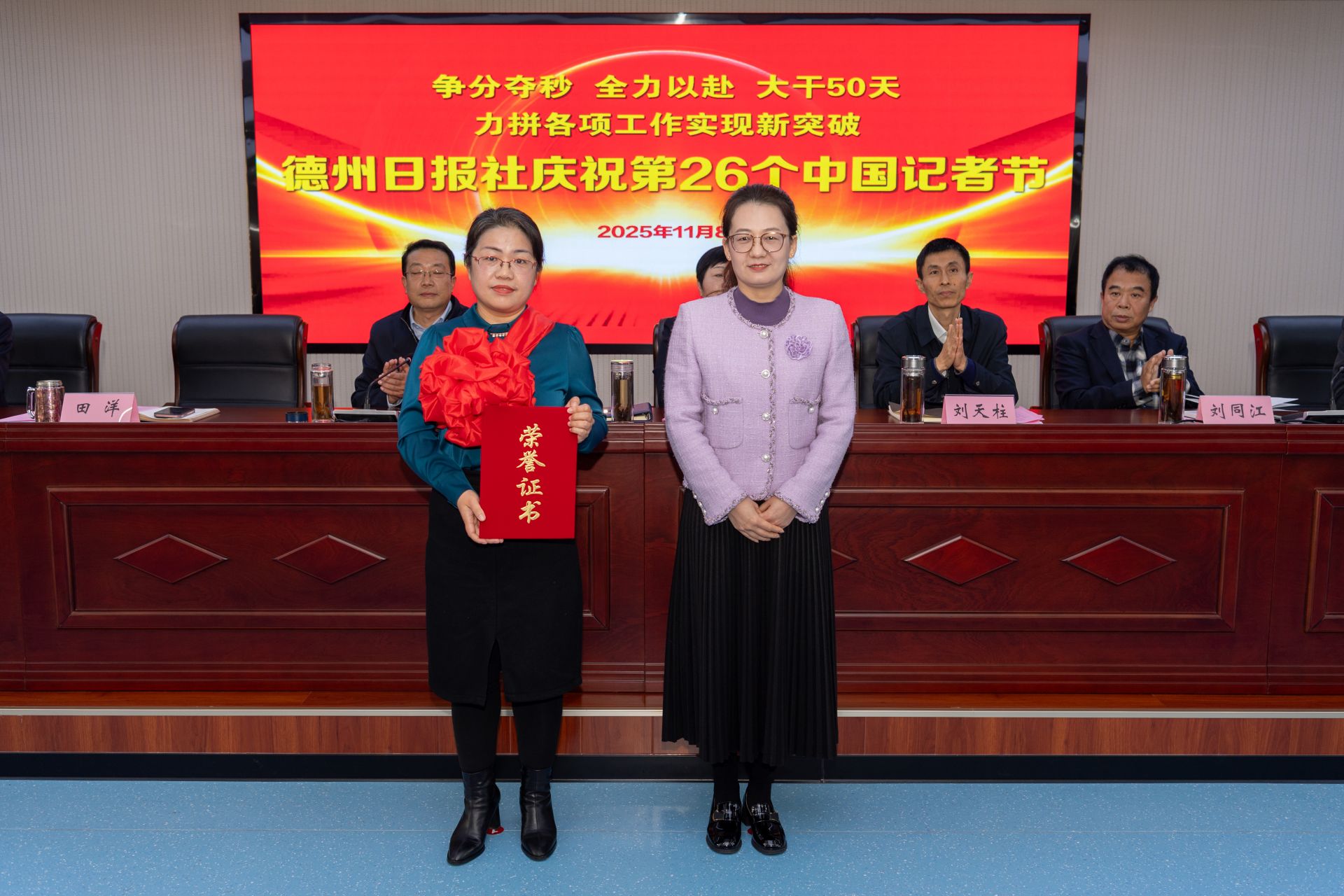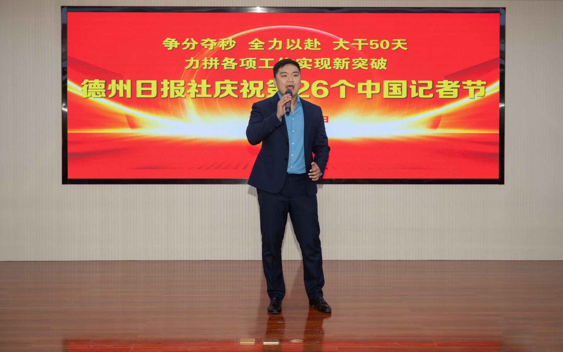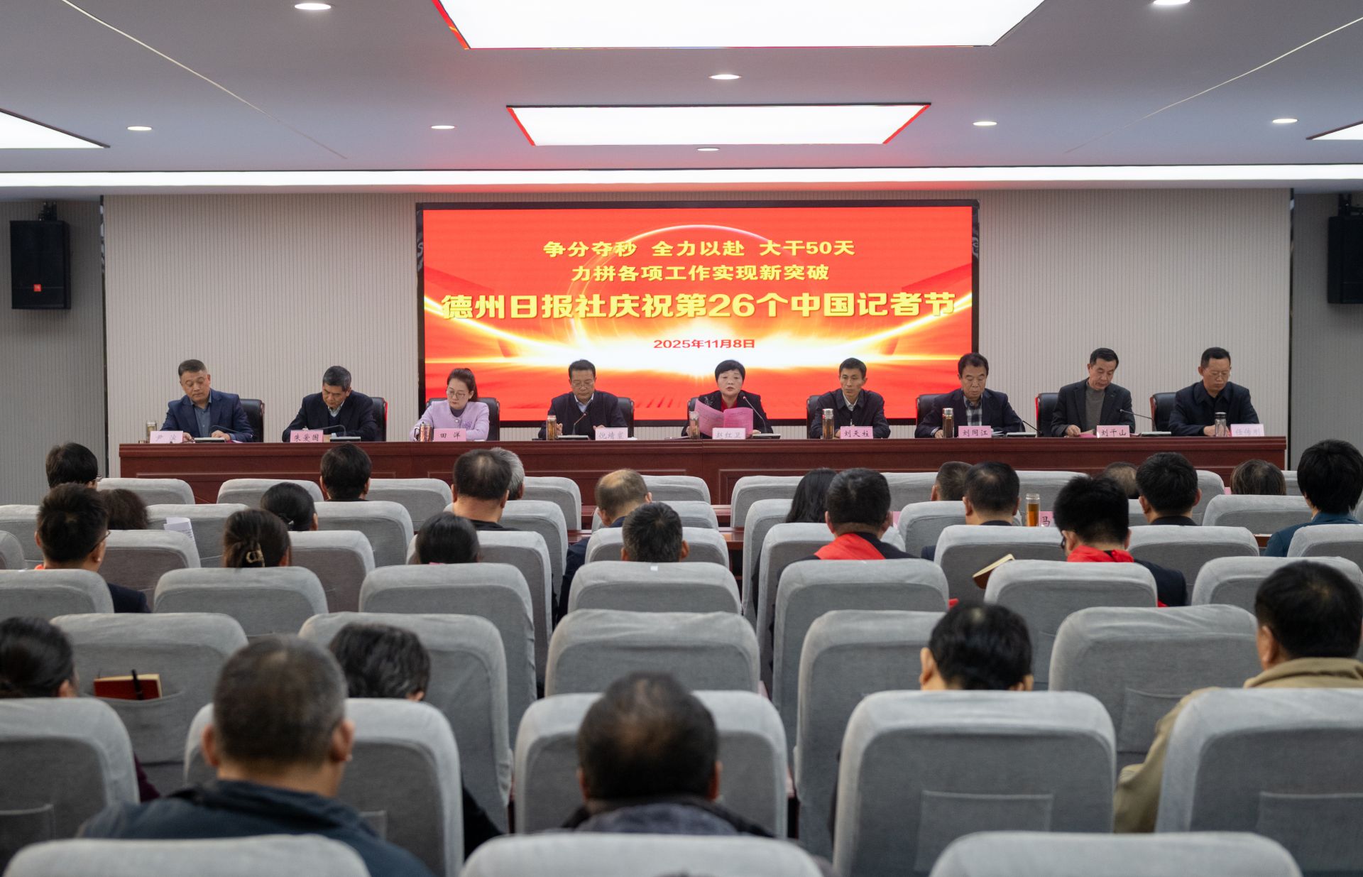 立冬微寒,德州日报社5楼会议室内暖意融融。11月8日下午,德州日报社以“争分夺秒、全力以赴、大干50天——力拼各项工作实现新突破”为主题,隆重庆祝第26个中国记者节。报社全体领导班子成员、市纪委监委派驻第九纪检监察组组长刘天柱及干部职工齐聚一堂,共同致敬新闻路上的执着坚守,见证荣光传承的动人时刻,凝聚起奋进新时代的磅礴力量。