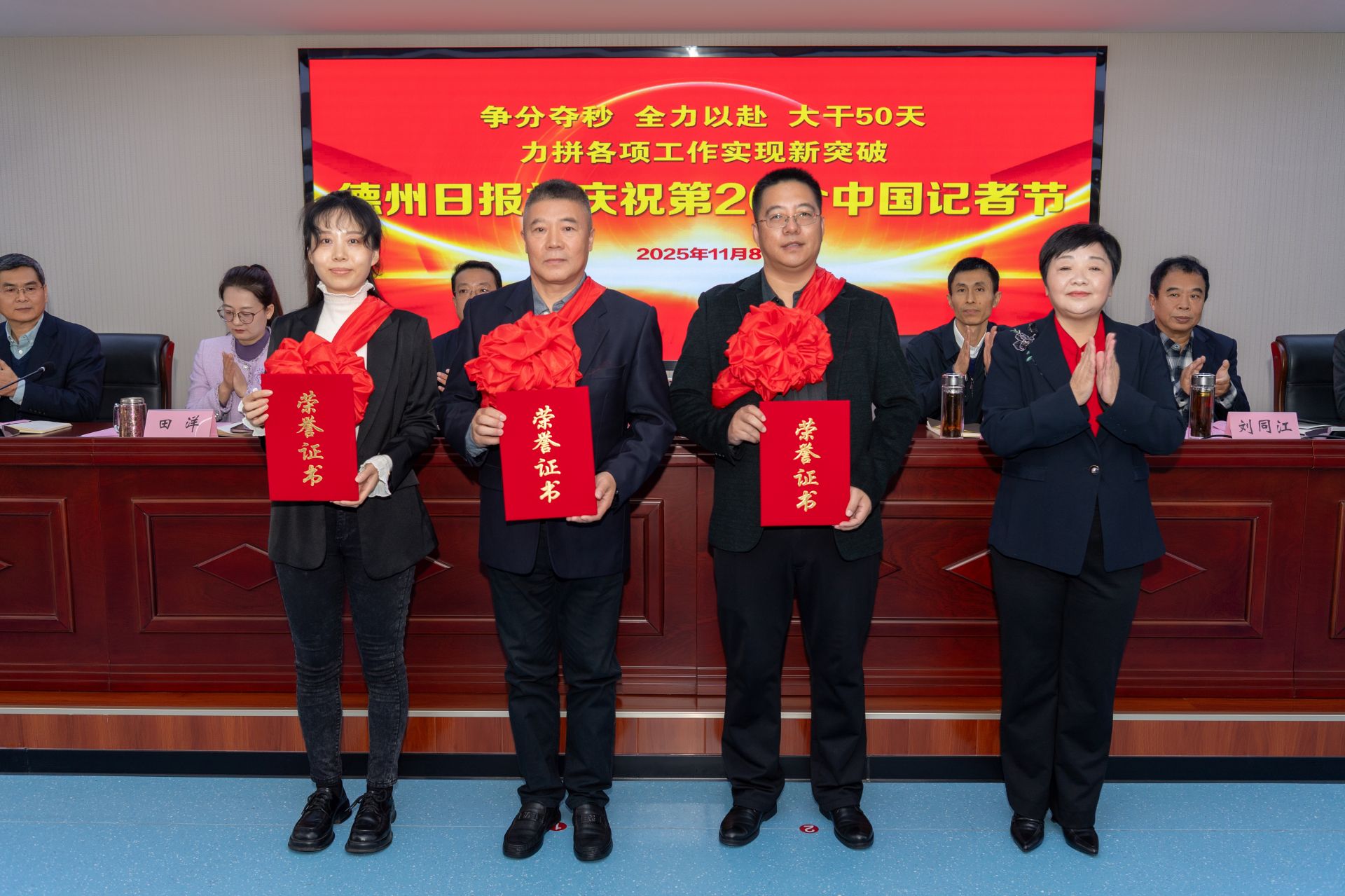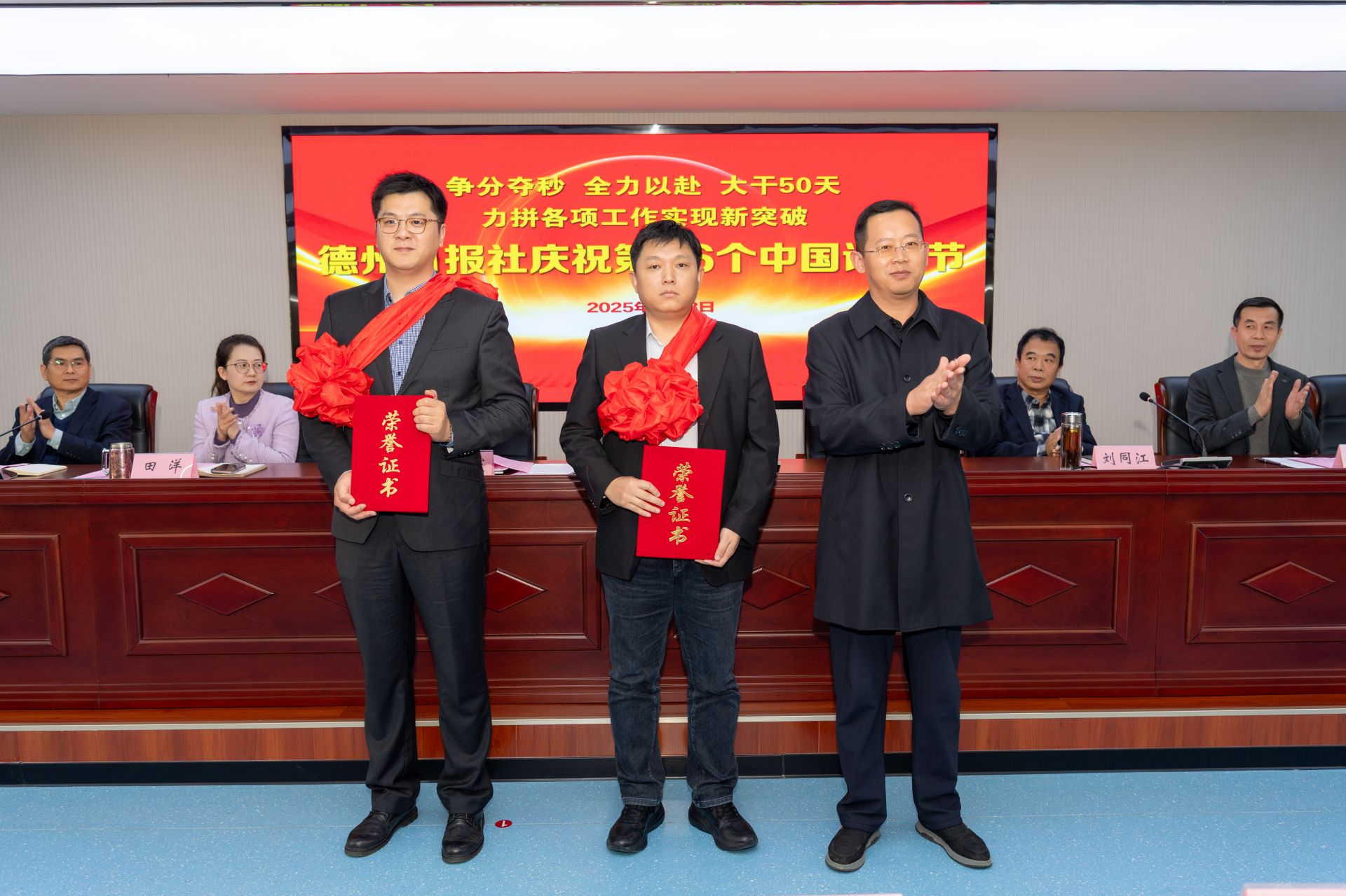 在媒体融合向纵深推进的时代浪潮中,德州日报社的专业坚守与创新突破同样绽放耀眼光芒。第四届全国报刊编校技能大赛山东赛区团体二等奖获得者张晓航、杨永峰、冯光华;2024年度全省报纸印刷质量精品奖获得者代表王勇;2024年度全省优秀网评品牌“德水观澜”主创代表胥爱珍;第七届“一带一路”百国印记短视频大赛获奖作品《光的使者》创作团队代表高红岩、密霖;2024年山东省“走好网上群众路线成绩突出账号”——“德州发布”工作室负责人孙亚民……每一项荣誉背后,都是一段用脚步丈量、用真情书写的故事;每一张闪亮的证书,都镌刻着德报人对新闻事业的执着追求与责任担当。