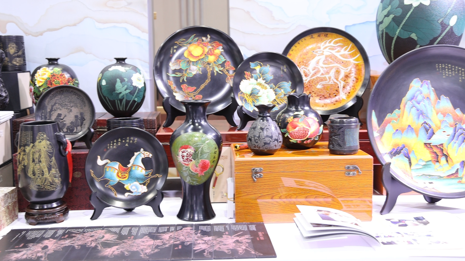 “我是景德镇陶瓷大学毕业的,看到老师正在刻黑陶,一下子就被吸引了!” 来自山西朔州的白月在 “山东馆” 德州展位前驻足,难掩兴奋,“黑陶是陶的起源 —— 龙山文化的标志性符号,老师把传统工艺和现代景泰蓝结合,做得特别精巧精美!”