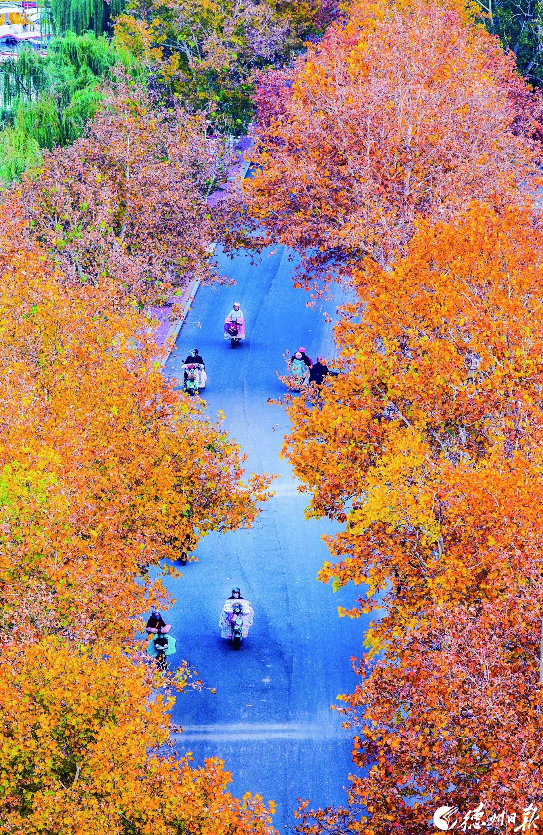 初冬的德州,披上了斑斓的衣裳,显得格外静谧。寒风拂过,林木悄然变换着妆容:红、黄、橙、绿交织,如同打翻的调色盘,将大街小巷渲染得如诗如画,处处散发着这个季节特有的温情与诗意。