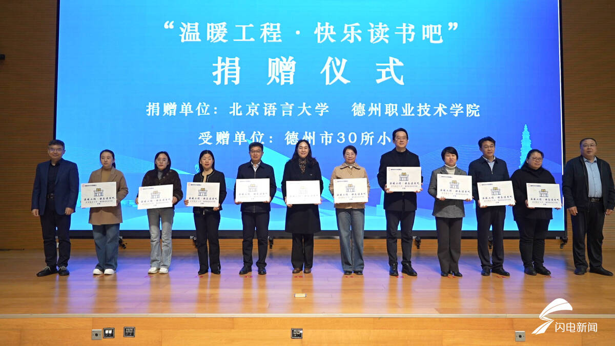 仪式上,北京语言大学与德州职业技术学院联合向德州市30所小学捐赠“温暖工程·快乐读书吧”系列丛书,总价值130余万元。德州市中华职教社、市党外知识分子联谊会“书香德州·文润匠心”全民阅读素养提升计划同步启动。