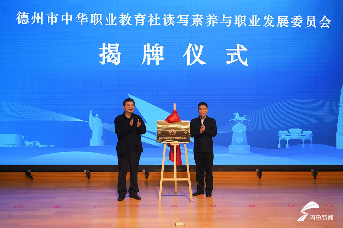 市委常委、统战部部长,德州高新区党工委书记、管委会主任张志华与德州职业技术学院党委书记樊兆杰为德州市中华职教社读写素养与职业发展委员会揭牌