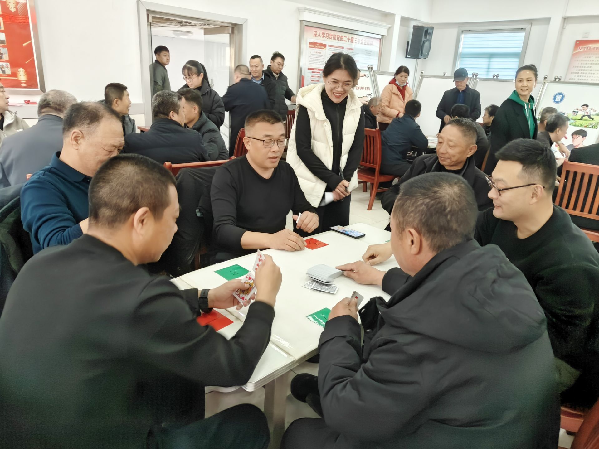 比赛当日,现场气氛活跃而有序。72名参赛者组成12支队伍,以经典的6人一队形式展开角逐。牌桌上,选手们全神贯注,默契配合,时而沉着运筹,时而果断出击。智慧的碰撞与团队的协作精神在方寸牌桌间展现得淋漓尽致。整个赛场既充满了竞技的紧张感,又洋溢着欢声笑语。