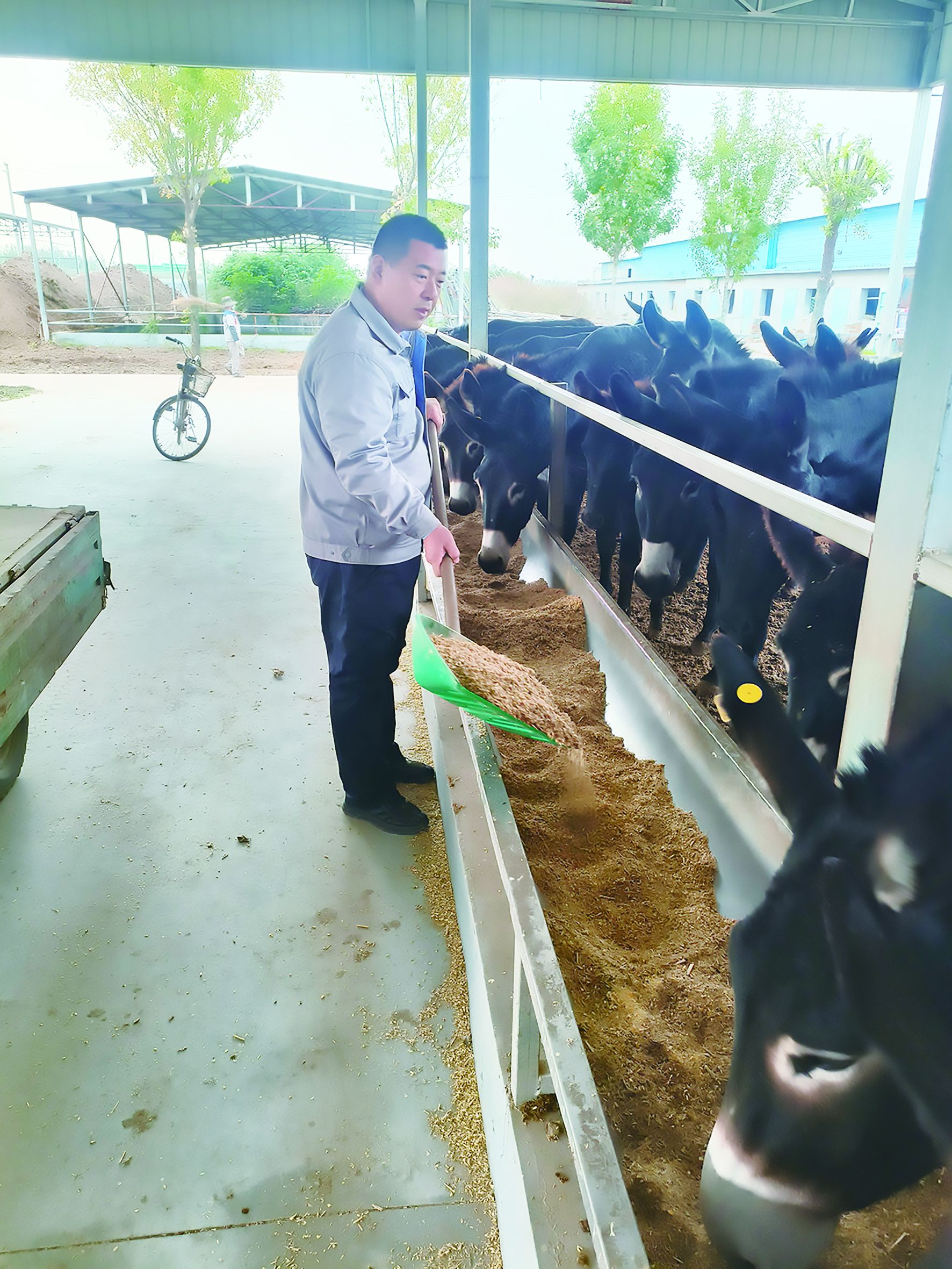 “自己把驴养好不算本事,带着乡亲们致富才是真本事。”养殖场步入正轨后,他在养殖扩繁的基础上,引导周边农民加入德州驴养殖的队伍,采用“公司+合作社+农户”的经营模式,同步提供疫病防治、仔驴供应、饲料保障等服务,带着乡亲们一起养驴。