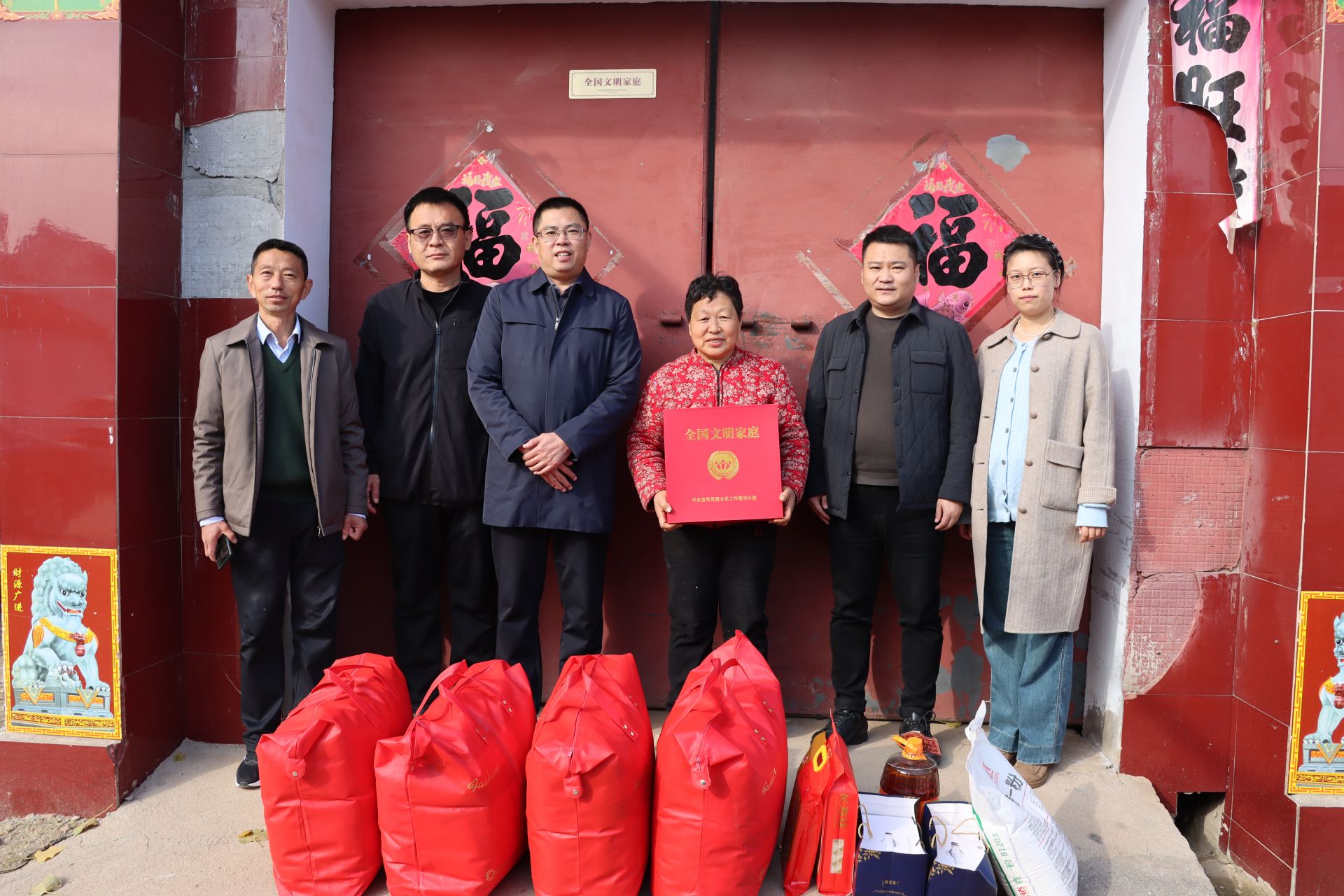 德州天衢新区新区办时庄村的杨俊花家庭荣获“第三届全国文明家庭”这一国家级荣誉称号,11月12日上午,产业园综合党委副书记、新区服务管理办公室副主任王永良同志、门亮同志;产业园综合党委委员、管区书记魏清良同志;新区服务管理办公室副主任周玉倩同志等一行专程前往杨俊花家中,为其发放荣誉奖牌,向这个充满大爱与奉献的家庭致以热烈的祝贺和崇高的敬意,并贴心地送上了米、面、油、棉被等生活物资。