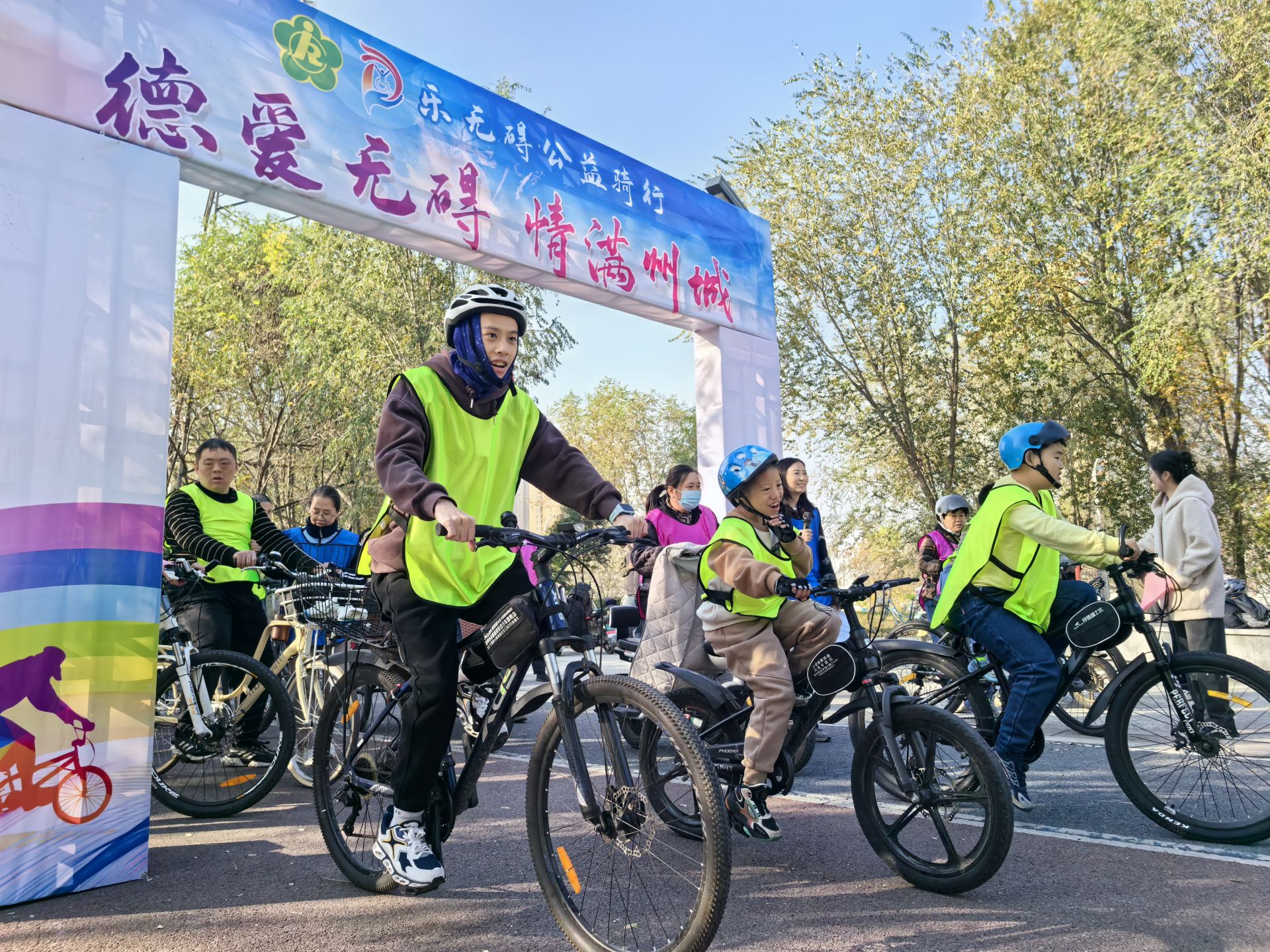 11月14日,“德爱无碍 情满州城”乐无碍公益骑行活动在锦绣川风景区举行。活动由德州市残疾人联合会主办,德州市精神残疾人及亲友协会承办,旨在丰富精神残疾人及其亲友的业余生活,帮助精神残疾人融入社会,实现生活自理,社会自立,吸引了110余名残疾人及亲属、志愿者的参与。