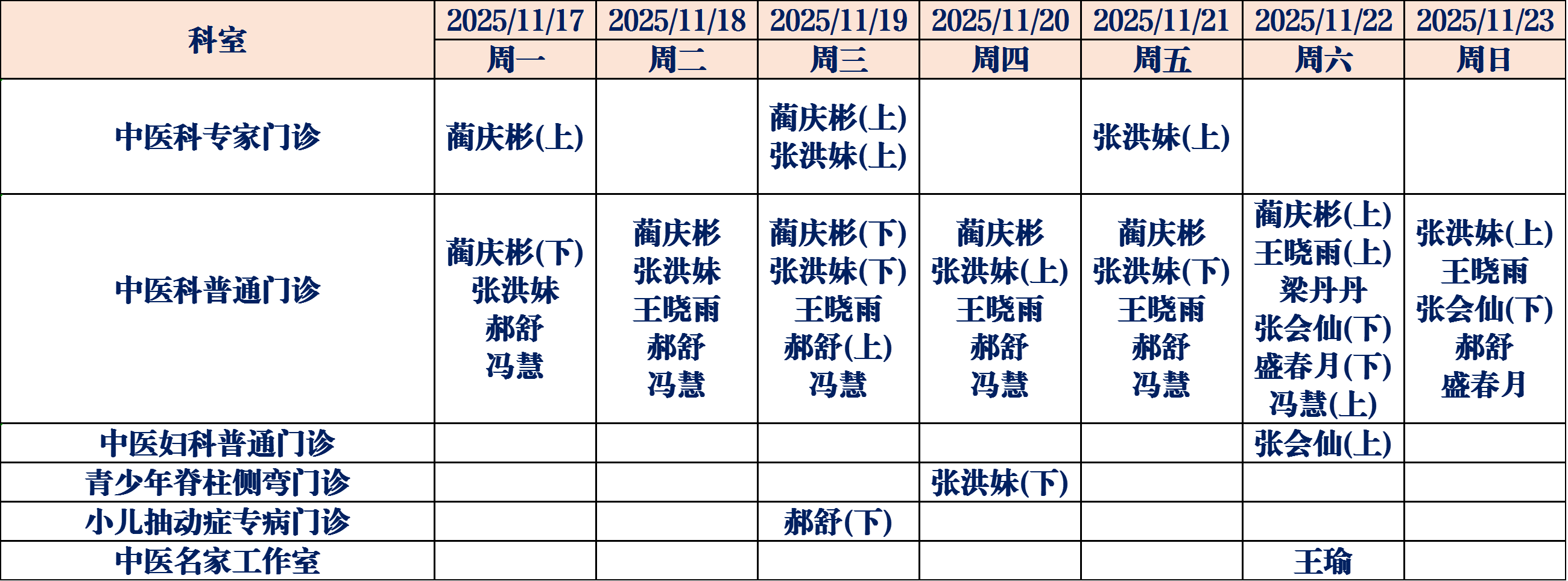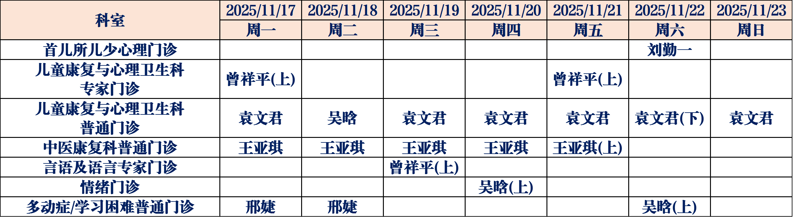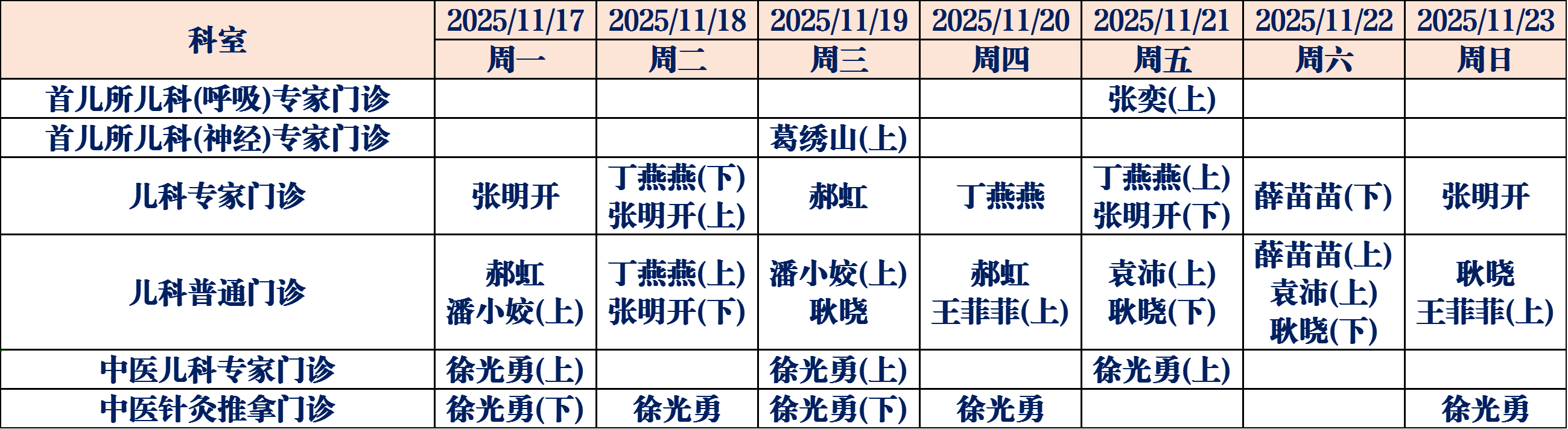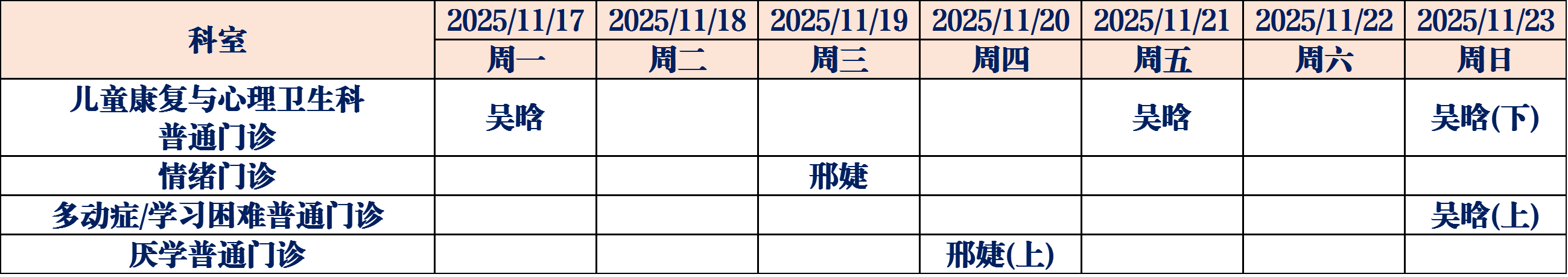 (如有临时调整,请以当日出诊信息为准,敬请谅解)
