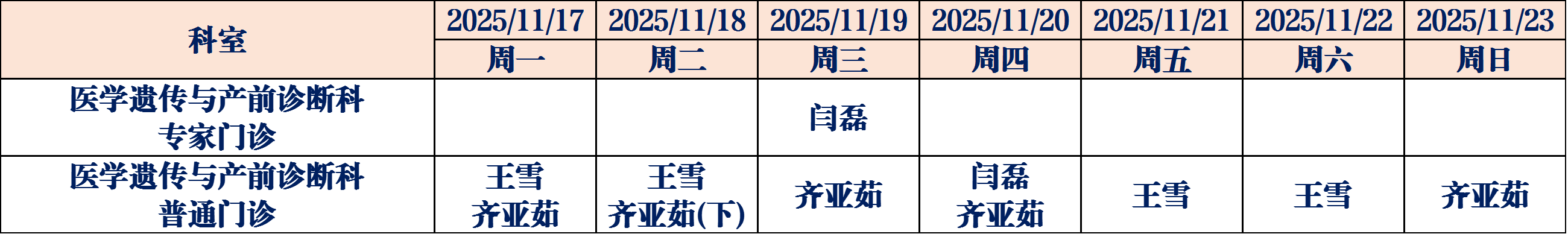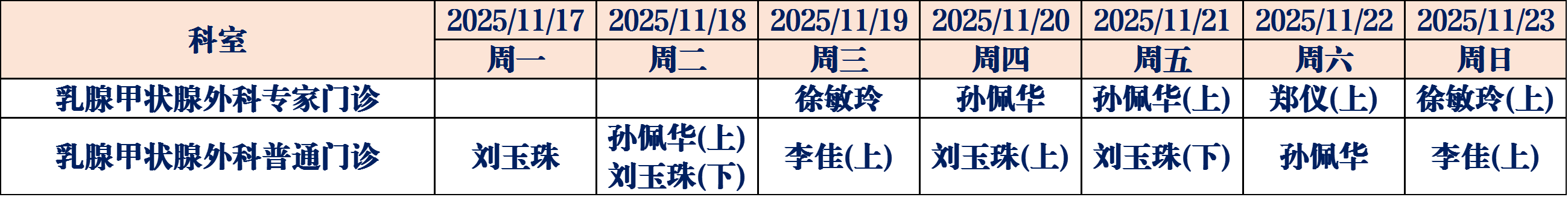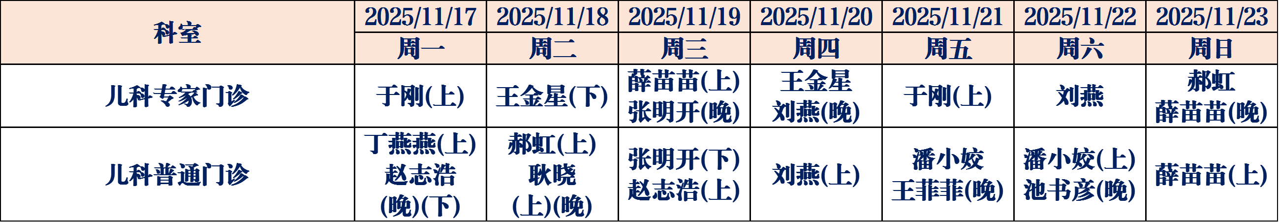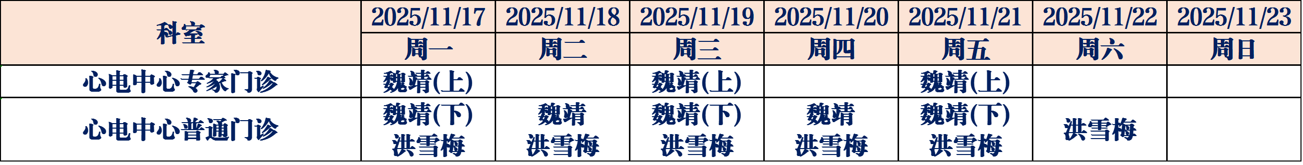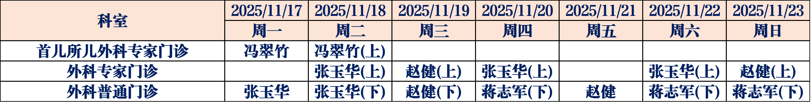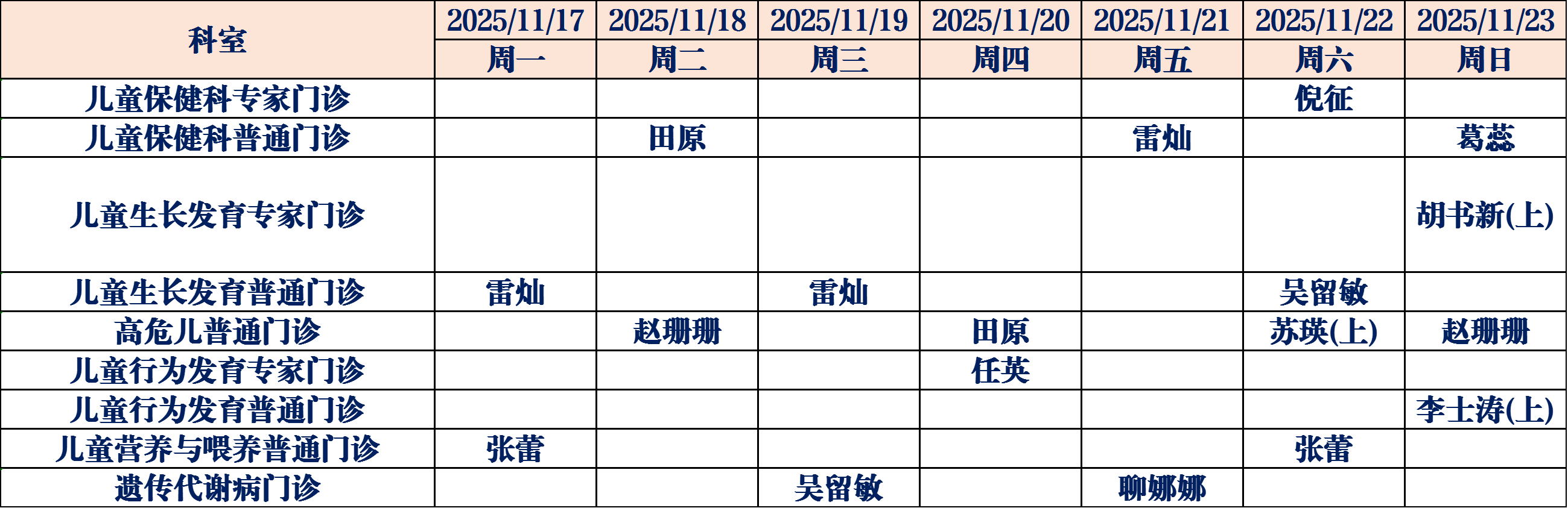 (如有临时调整,请以当日出诊信息为准,敬请谅解)