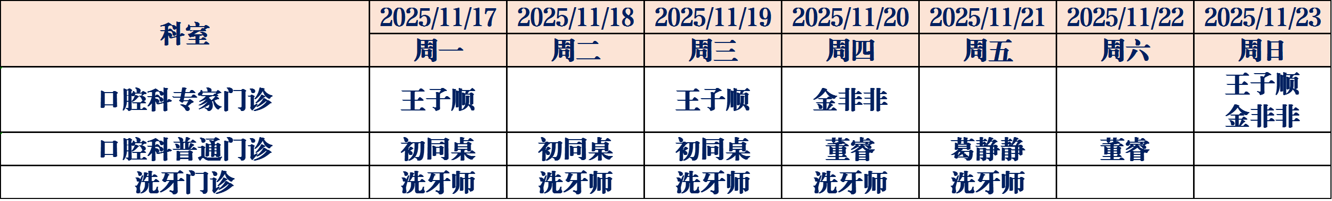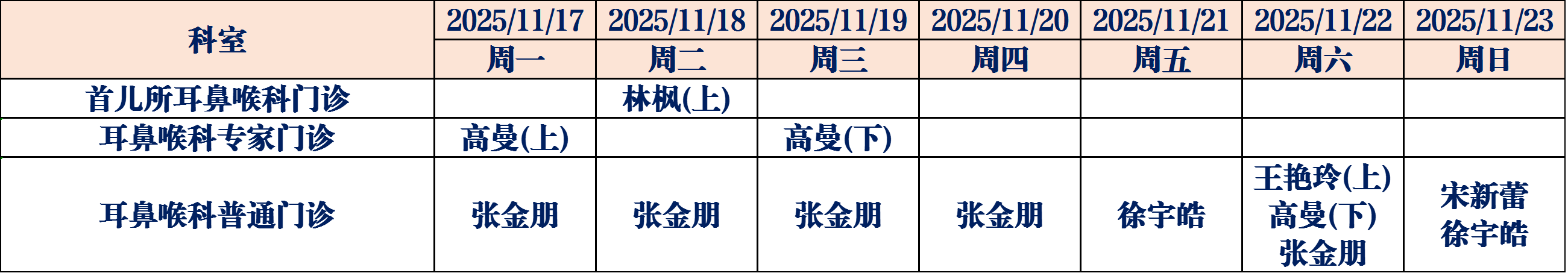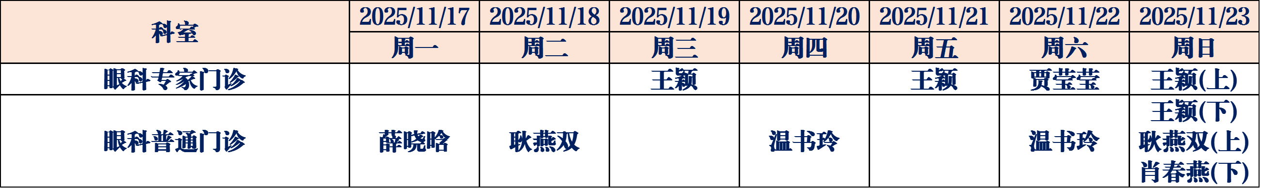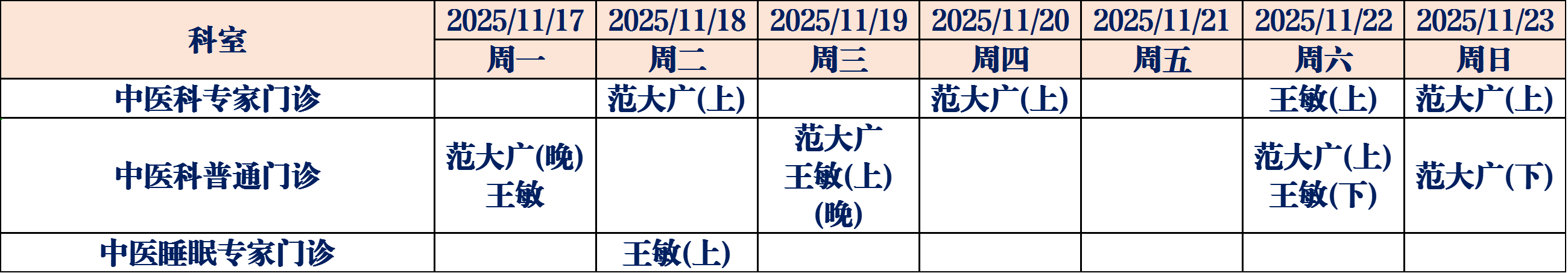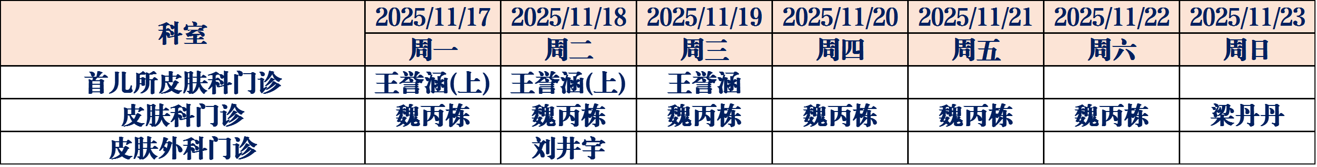 (如有临时调整,请以当日出诊信息为准,敬请谅解)
