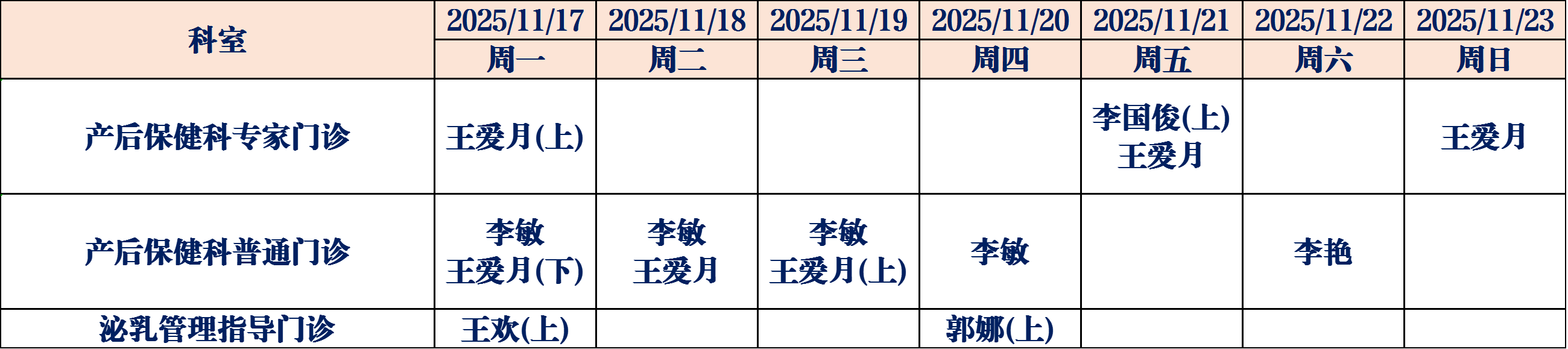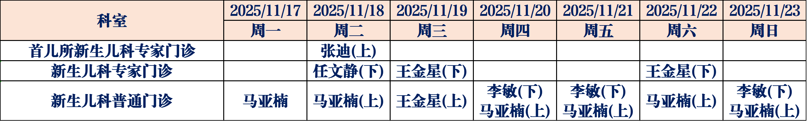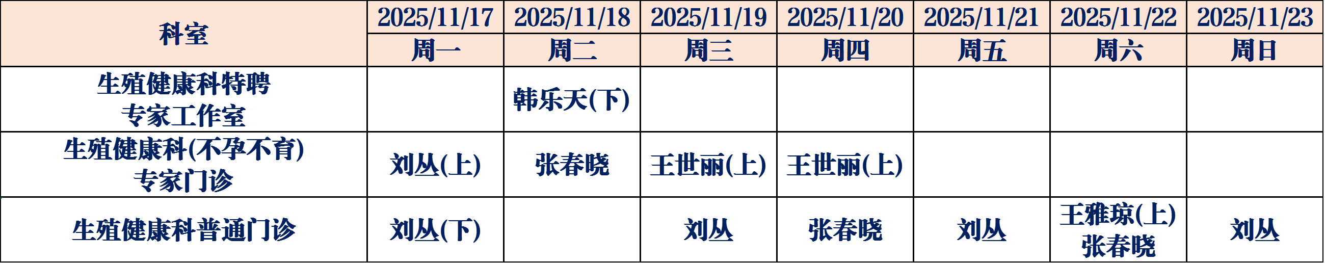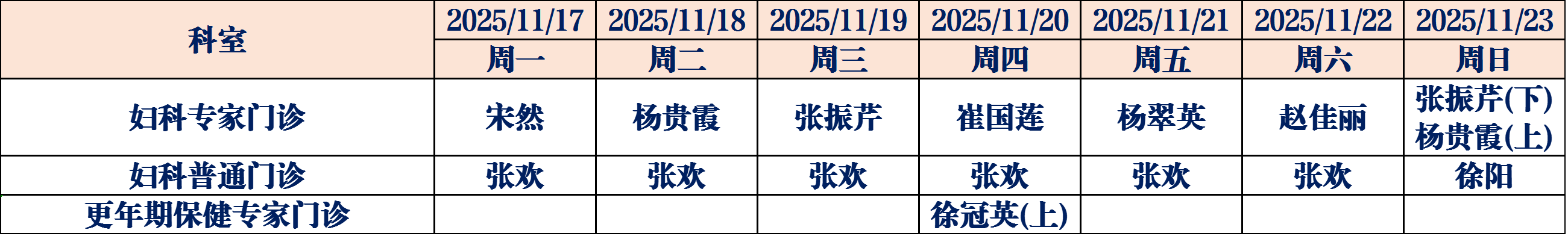 为了更好地满足广大人民群众就医需求,德州市妇幼保健院11月17日至11月23日门诊医生坐诊表如下,请您根据需求选择合适的时间进行就医。