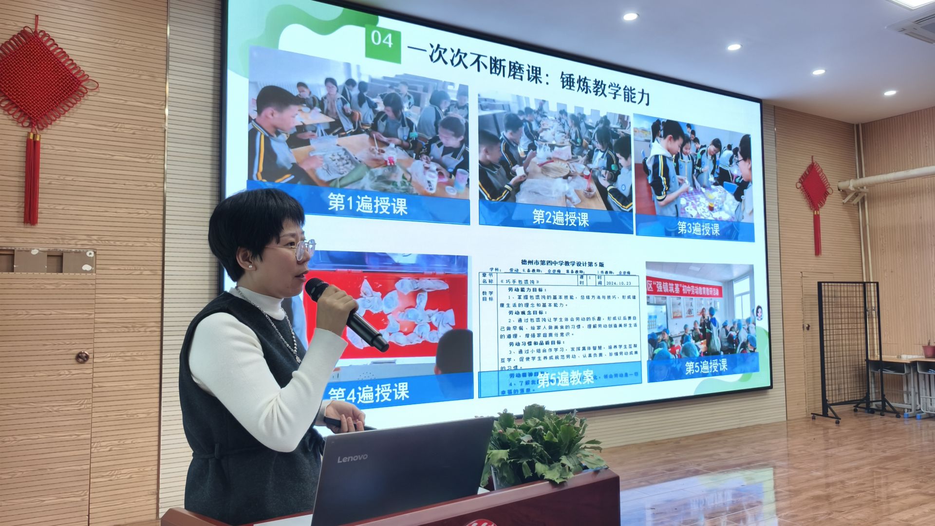 第四中学教师佘崇梅分享教师专业化成长经验,实验小学教师李雪介绍教研组协同提升课堂质量的做法,德州学院附属小学教师贾风霞讲解劳动项目与多学科融合的实践路径,三场分享引发参会教师广泛思考。