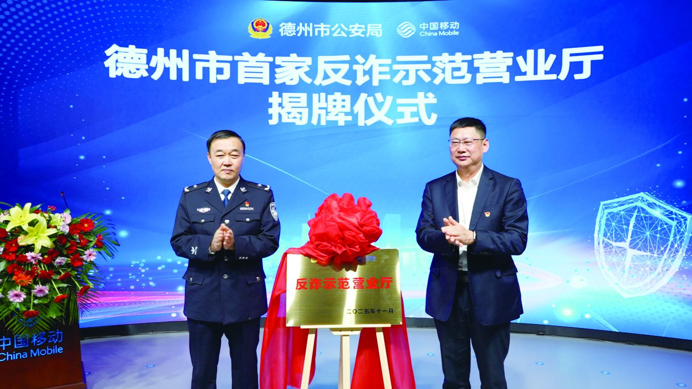 11月19日,山东移动德州分公司与德州市公安局联合打造的全市首家“警企联动”反诈示范营业厅,在天衢新区德州移动康博营业厅正式揭牌启用。德州市公安局党委委员、副局长李壮志,德州移动公司党委书记、总经理赵福忠等出席活动并致辞。