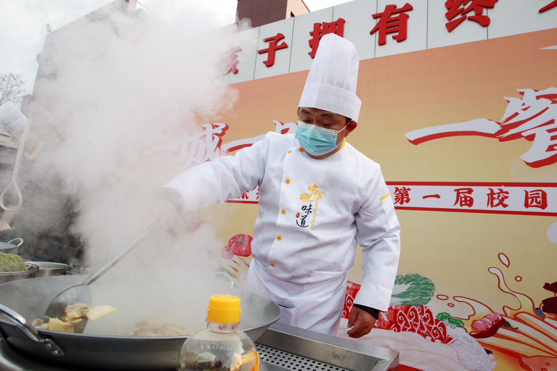 活动在《厨房狂想曲》舞蹈中拉开帷幕。操场上,八大菜系文化长廊图文并茂地展示了中国饮食文化的博大精深。该校校长钟华与烹饪协会大师联袂献艺,现场演示川菜、鲁菜经典技艺,干冰制造的云雾效果更添仙境氛围。