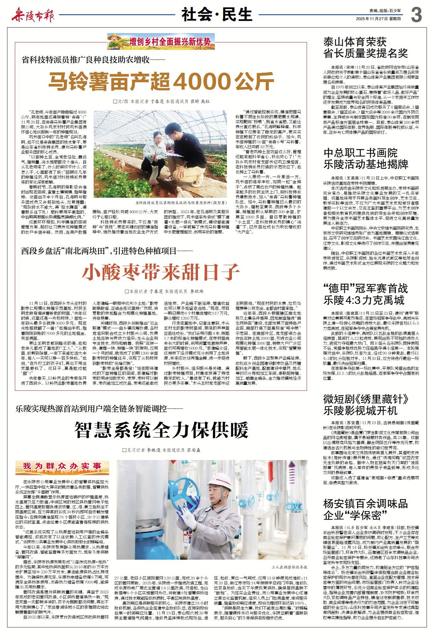 ▶乐陵:省科技特派员助力,马铃薯亩产超4000公斤(点击查看详情)