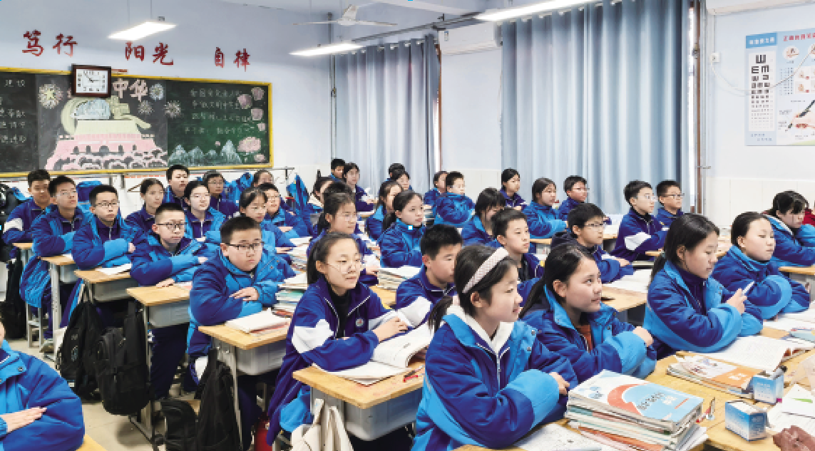 “装了护眼灯,教室光线特别柔和,看书写字久了眼睛也不酸胀了!”11月24日,齐鲁中学七年级六班教室里,学生邢梓鑫指着头顶的新灯具开心地说。