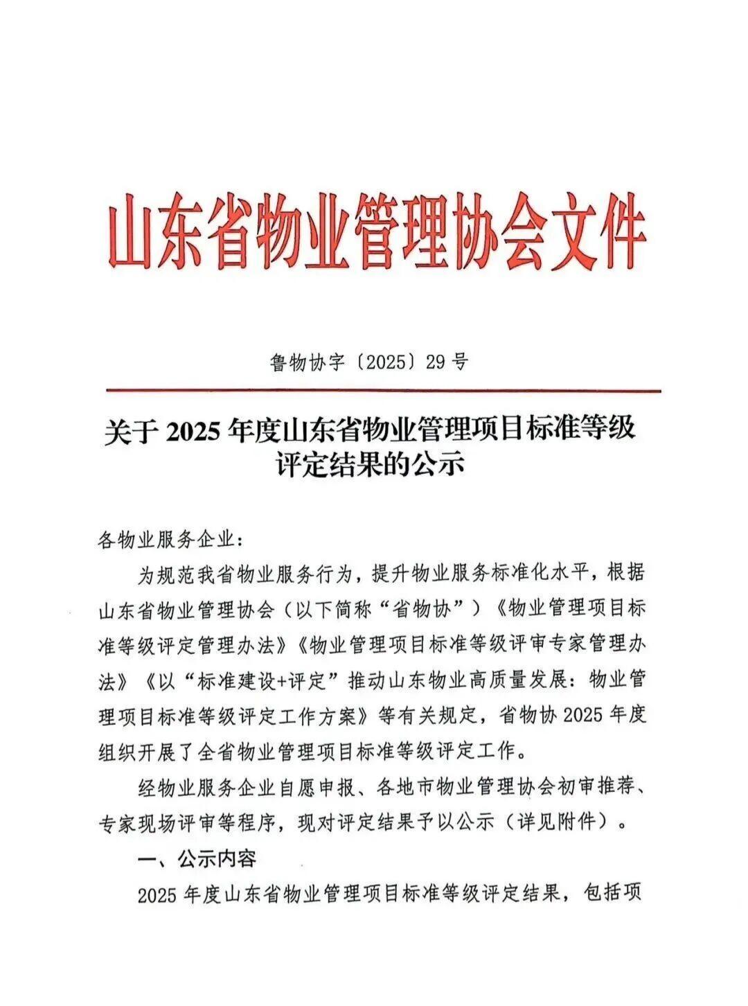 近日,在2025年度山东省物业管理项目标准等级评定中,崇德物业在管的崇德园项目获5A最高等级认证。