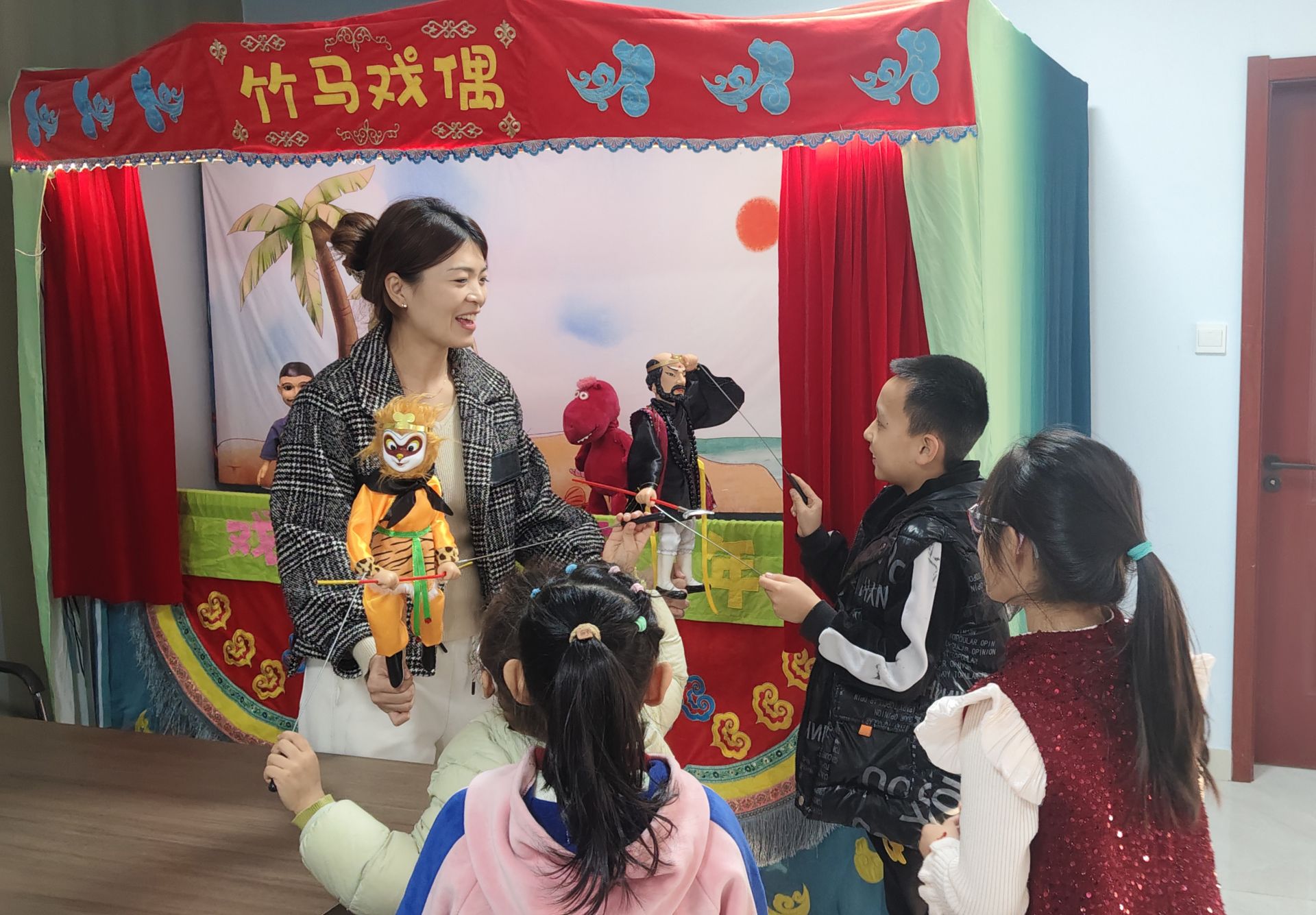演出后还设置了戏偶体验环节。工作人员准备了孙悟空、沙和尚等造型的戏偶,指导孩子们亲手操作。大家兴致盎然,积极尝试模仿经典动作,在与戏偶的互动中进一步感受到传统艺术的乐趣。