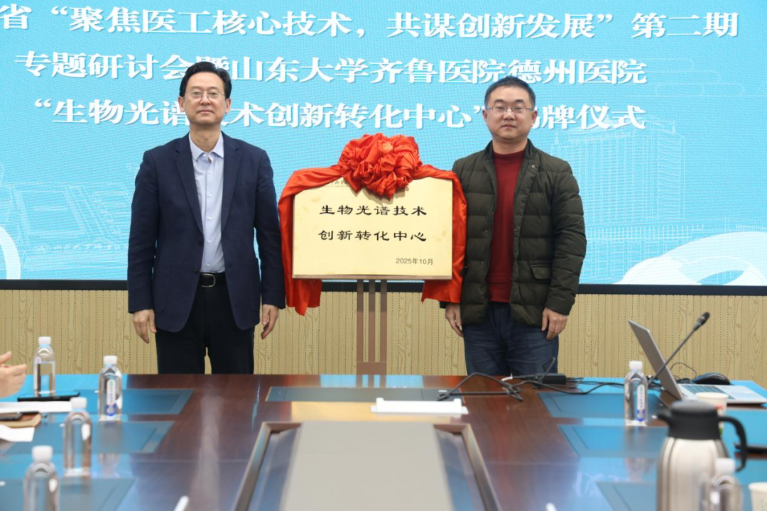 近日,山东省“聚焦医工核心技术,共谋创新发展”第二期专题研讨会暨“生物光谱技术创新转化中心”揭牌仪式在齐鲁医院德州医院中心院区举行。