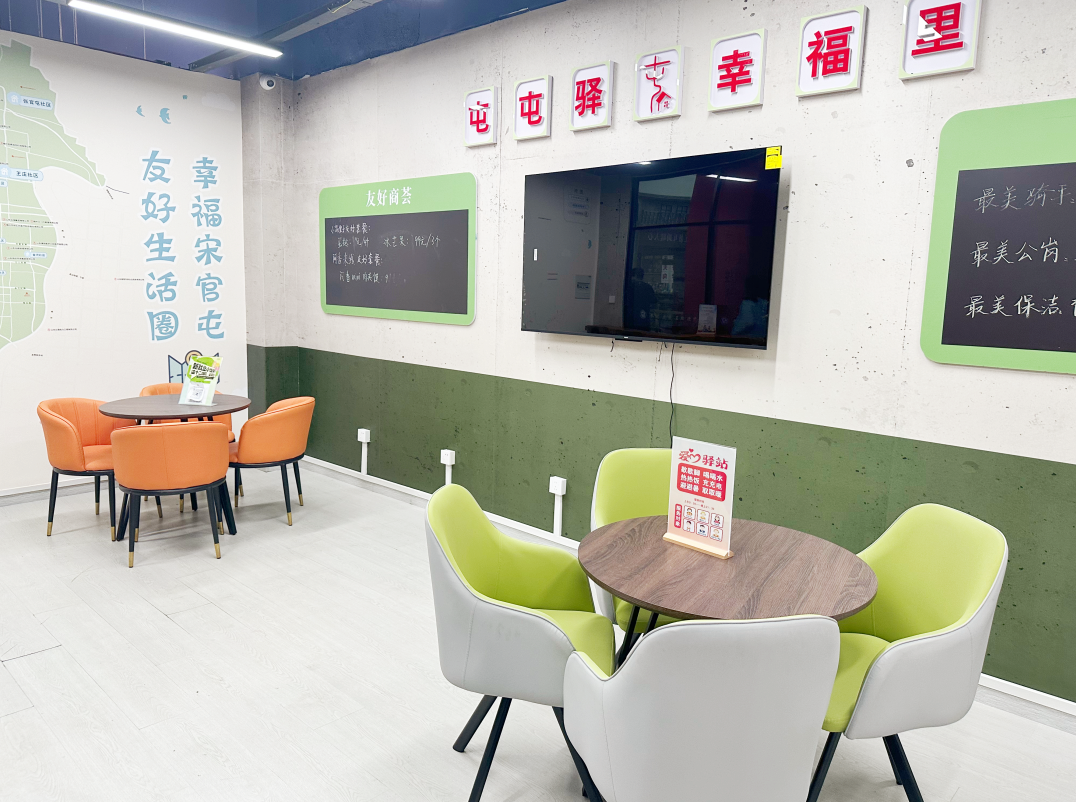 “能喝口水、歇个脚,很实在。”外卖员小李说,他每天中午都会来这里休息片刻。这个由德百奥莱联合宋官屯街道设立的服务点,日均服务超过100人次,成为街区温暖的人文注脚。