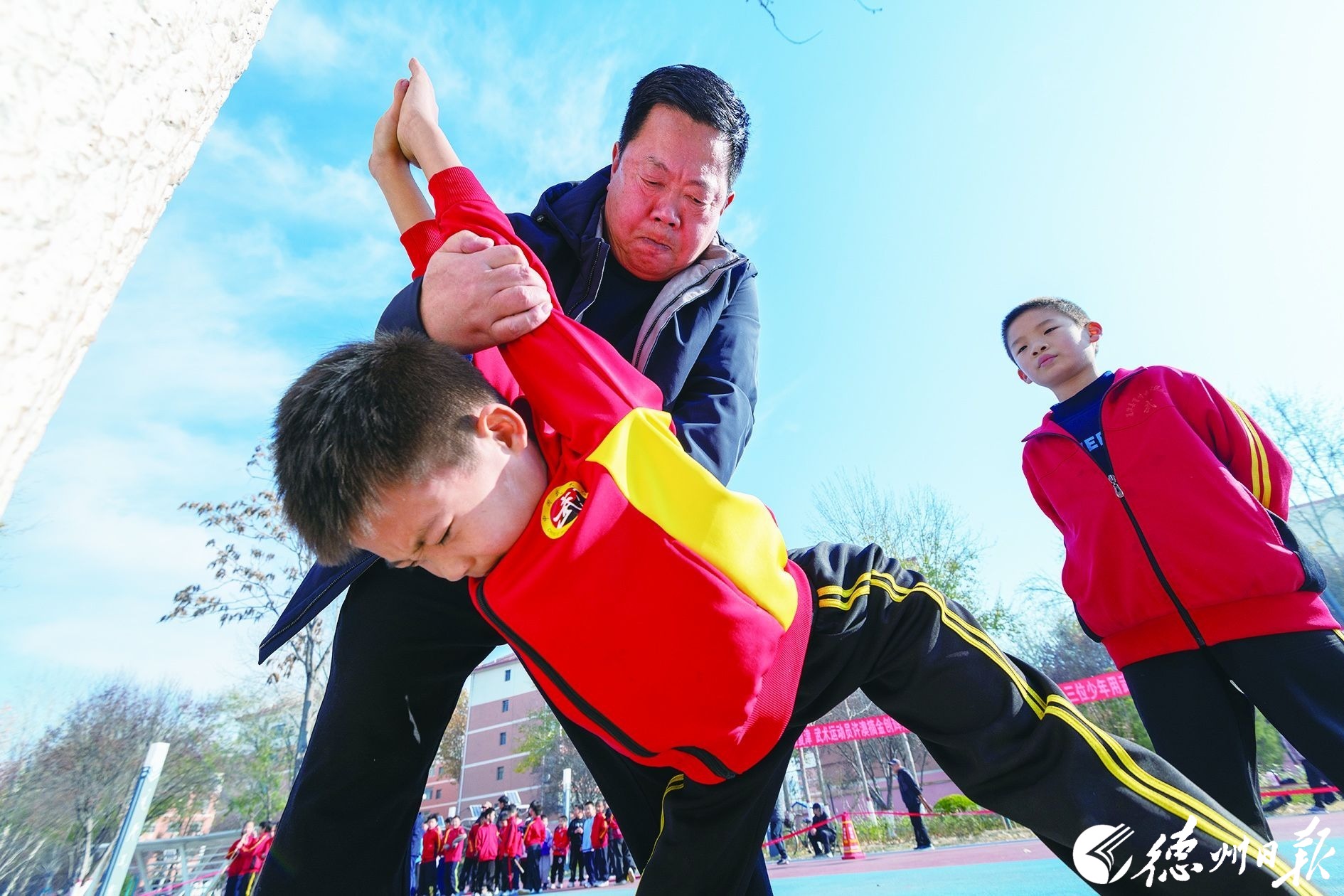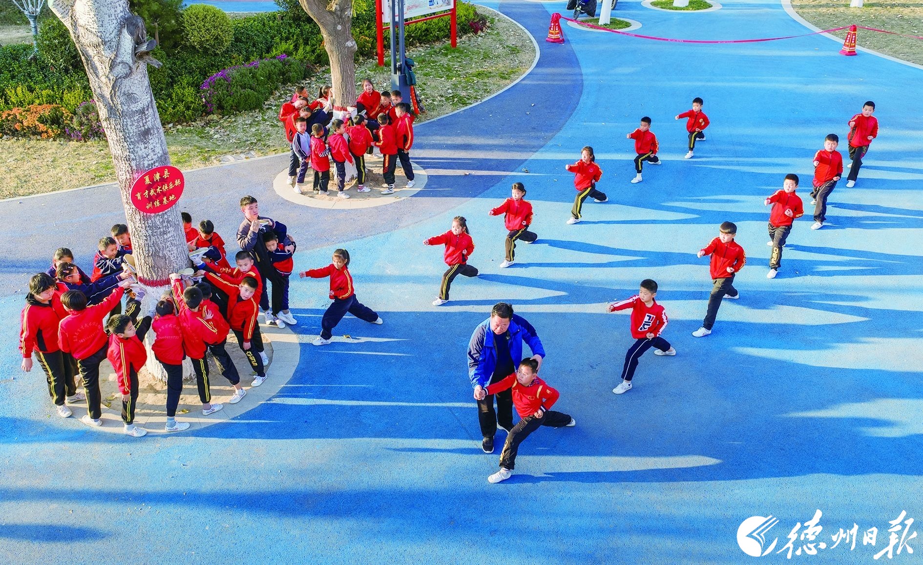 1977年,14岁的范业斌凭借刻苦训练跻身德州地区体校武术队。身披省队战袍是他最炽热的梦想,但这一梦想最终未能实现。“自己没实现的目标,就让孩子们去实现。”怀着这样的信念,1982年,19岁的他回到家乡,成为一名基层武术教练。当年的训练条件十分简陋,原县委西公园的一片空地是他们的训练场,一棵大杨树则成了孩子们压腿的“把杆”。