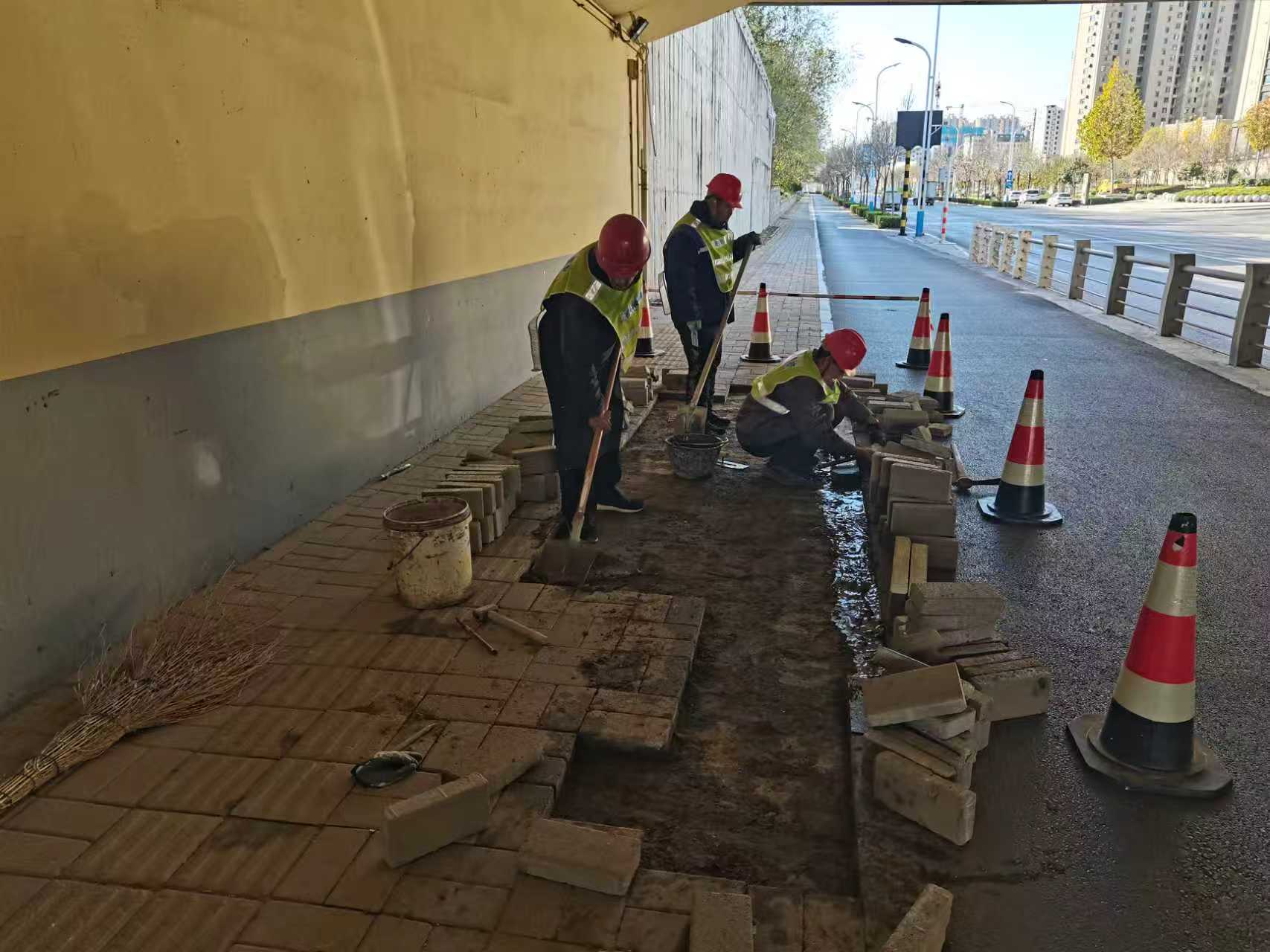 精修细补,攻坚克难,扎实推进精细作业。严格对标行动方案标准,将精细化管理要求贯穿于设施巡查、维修养护的全过程。行动开展以来,累计完成10余条主次干道及重点道路的巡视,对东方红路、康博大道与东风东路交叉口等24处关键点位进行重点勘查。针对发现的病害隐患,迅速组织力量进行维修处置,完成路面修补235平方米,维修人行道420平方米、路沿石90米;检修路灯209基,处理故障66处,维修线路330余米,确保亮灯率;及时更换维修各类检查井、雨水井,清理维护防撞杆、桥梁护栏等设施,提升市政设施完好率和安全运行水平。