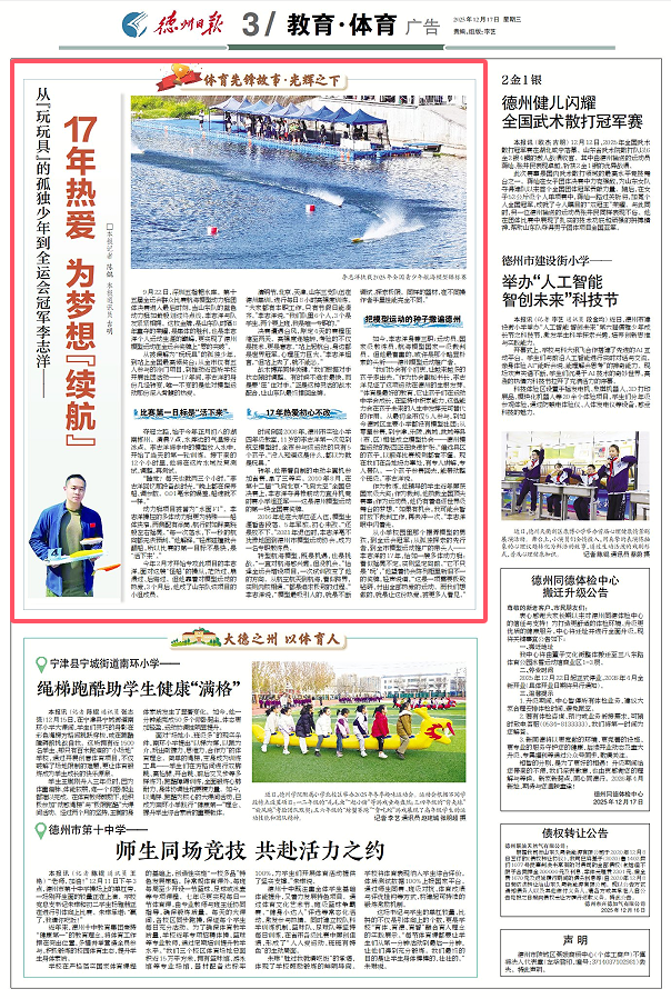 如今,李志洋身兼三职:运动员、国家级教练员、航海模型国家一级裁判员。但他最看重的,或许是那个略显朴素的头衔——德州模型运动推广者。